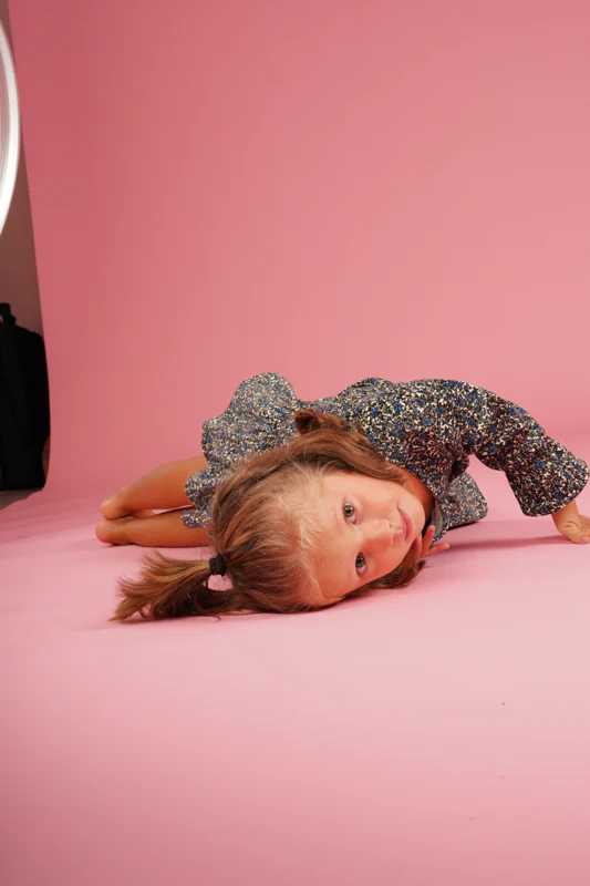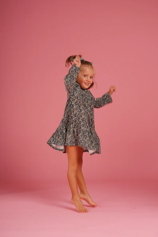 Abito con balze realizzato in velluto fantasia micro-fiorellini con chiusura dietro a goccia con bottoncino. Il velluto è un tessuto intramontabile, confortevole e resistente, soffice e felpato prodotto con seta, cotone o fibre sintetiche viste.