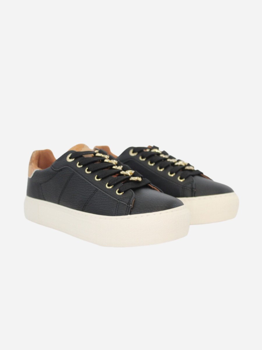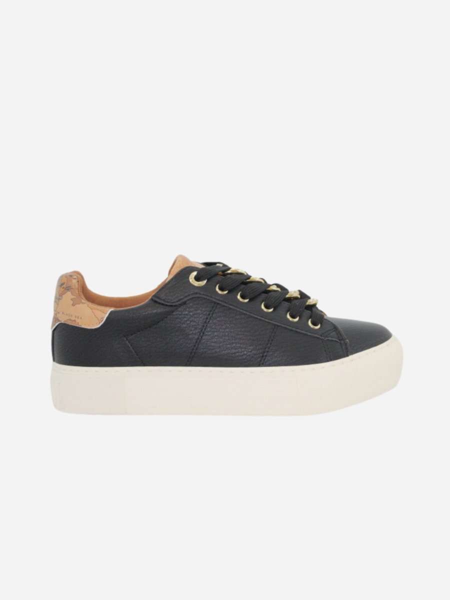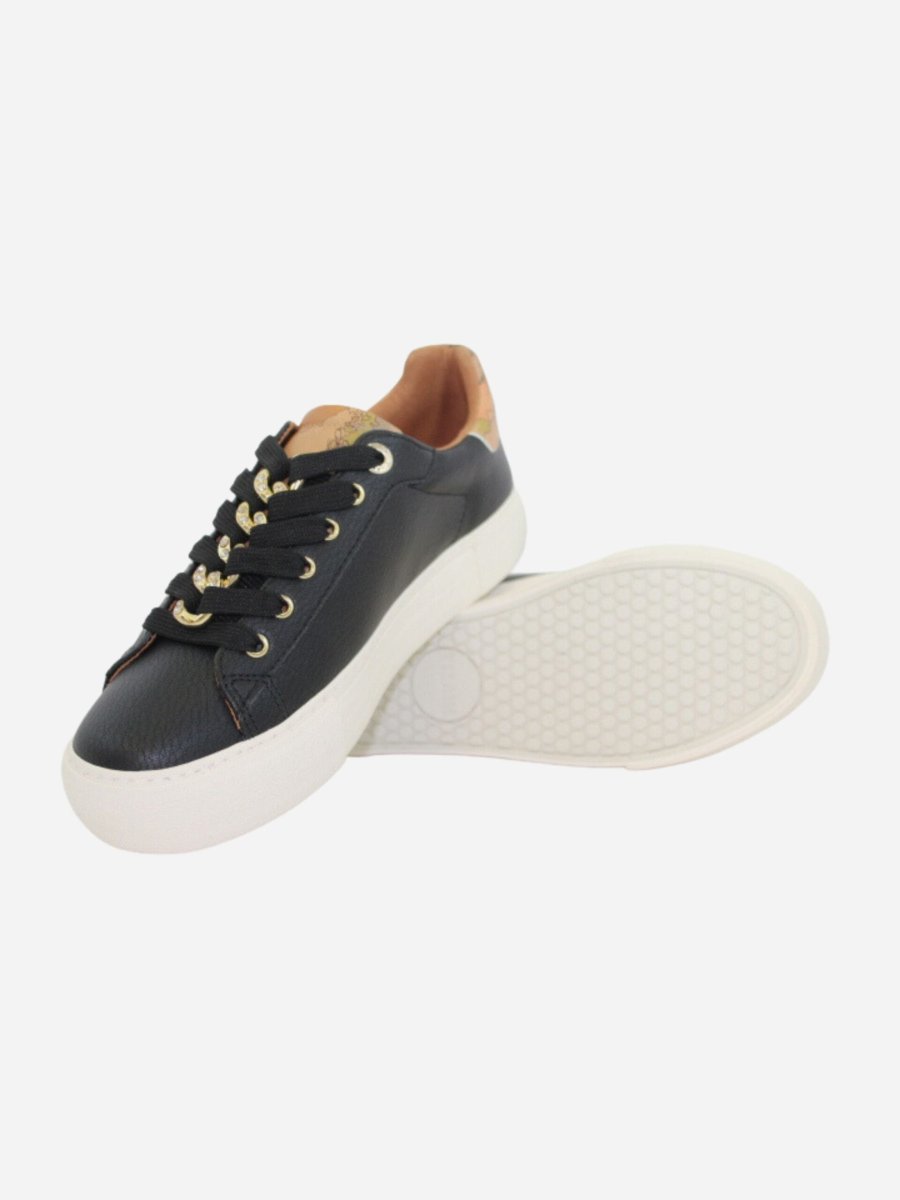Sneakers by Prima Classe di Alviero Martini. Scarpe realizzate in eco-pelle con interno misto tessuto e pelle. Suola alta in gomma di 3 cm. Dettaglio fantasia geo sul retro e applicazione di strass sui lacci. Chiusura con lacci. Prima Classe by Alviero Martini รจ il brand dell’iconica fantasia geo, che rende inconfondibile lo stile delle calzature. Il design, interamente italiano, รจ ispirato al viaggio ed รจ realizzato con eccellenza artigianale.