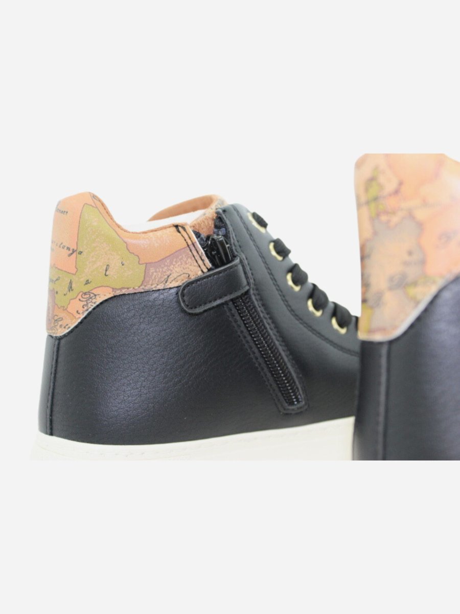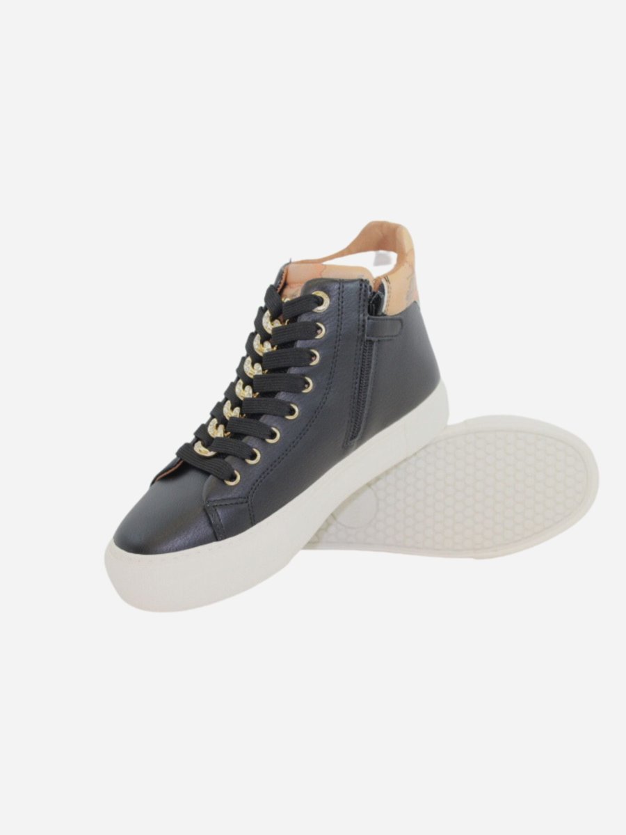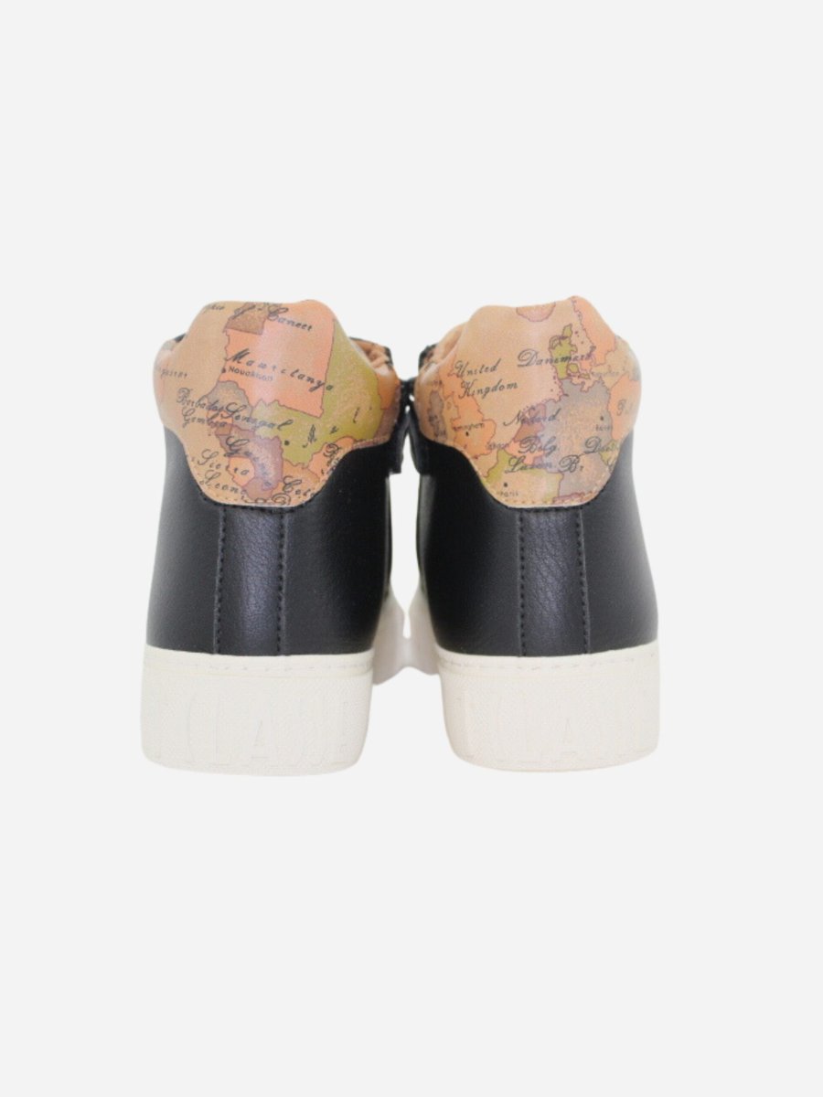 Sneakers alte by Prima Classe di Alviero Martini. Scarpe realizzate in eco-pelle con interno misto tessuto e pelle. Suola in gomma di 3 cm con logo in rilievo. Dettaglio fantasia geo sul retro e applicazione di strass sui lacci. Chiusura con cerniera e bottoncino. Prima Classe by Alviero Martini รจ il brand dell’iconica fantasia geo, che rende inconfondibile lo stile delle calzature. Il design, interamente italiano, รจ ispirato al viaggio ed รจ realizzato con eccellenza artigianale.