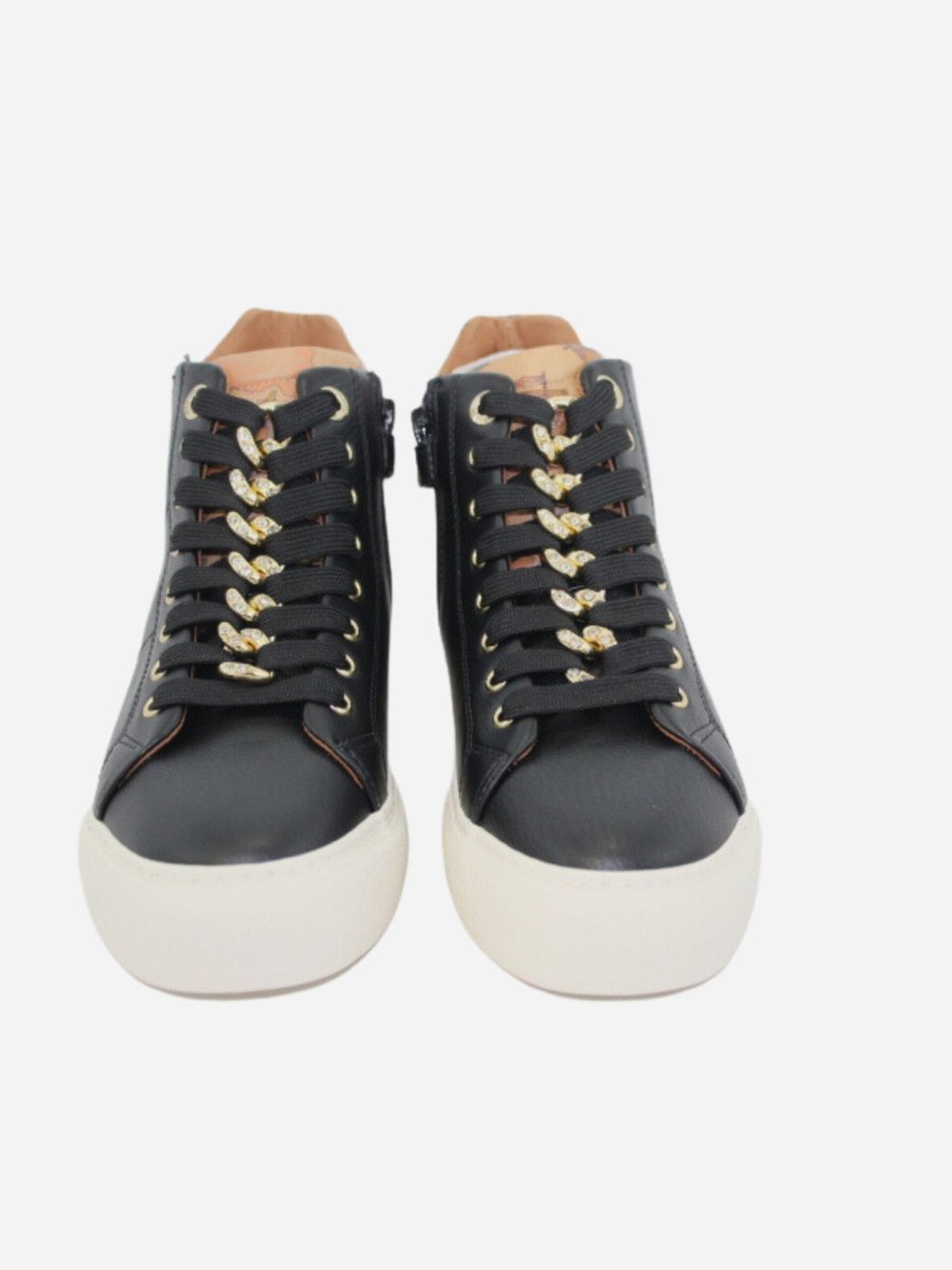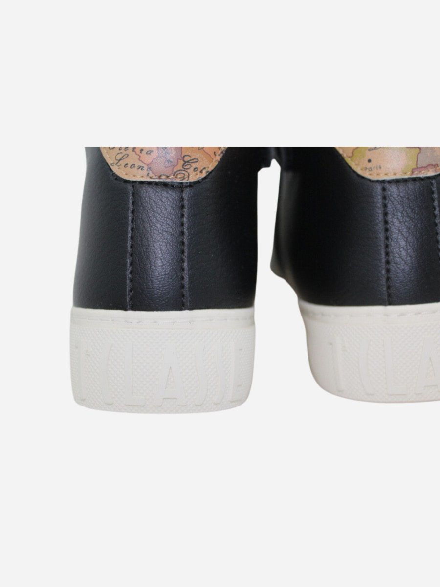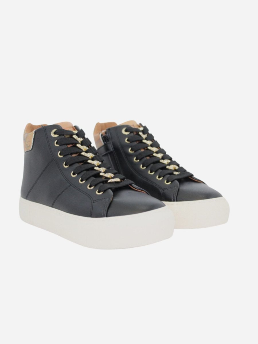 Sneakers alte by Prima Classe di Alviero Martini. Scarpe realizzate in eco-pelle con interno misto tessuto e pelle. Suola in gomma di 3 cm con logo in rilievo. Dettaglio fantasia geo sul retro e applicazione di strass sui lacci. Chiusura con cerniera e bottoncino. Prima Classe by Alviero Martini รจ il brand dell’iconica fantasia geo, che rende inconfondibile lo stile delle calzature. Il design, interamente italiano, รจ ispirato al viaggio ed รจ realizzato con eccellenza artigianale.