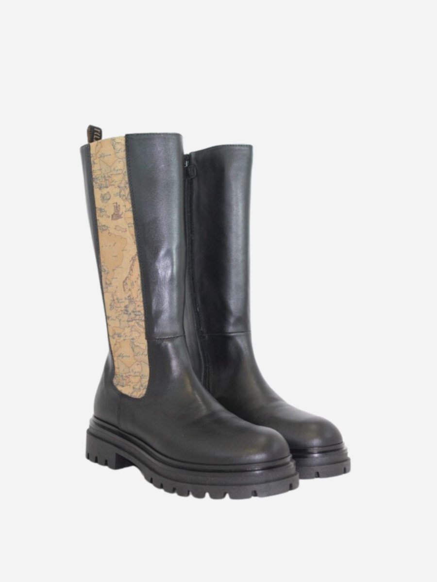 Stivaliย 1774 by Prima Classe di Alviero Martini. Scarpe realizzate in pelle con suola track in gomma. Tacco di 4 cm. Chiusura con cerniera laterale. Fasce laterali con l’iconica stampa geo. Prima Classe by Alviero Martini รจ il brand dell’iconica fantasia geo, che rende inconfondibile lo stile delle calzature. Il design, interamente italiano, รจ ispirato al viaggio ed รจ realizzato con eccellenza artigianale.