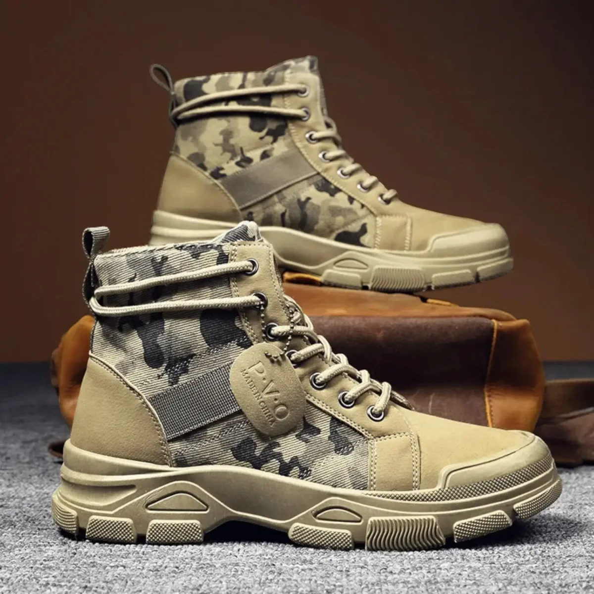 Anfibi a motivo mimetico: per il vostro piรน grande comfort