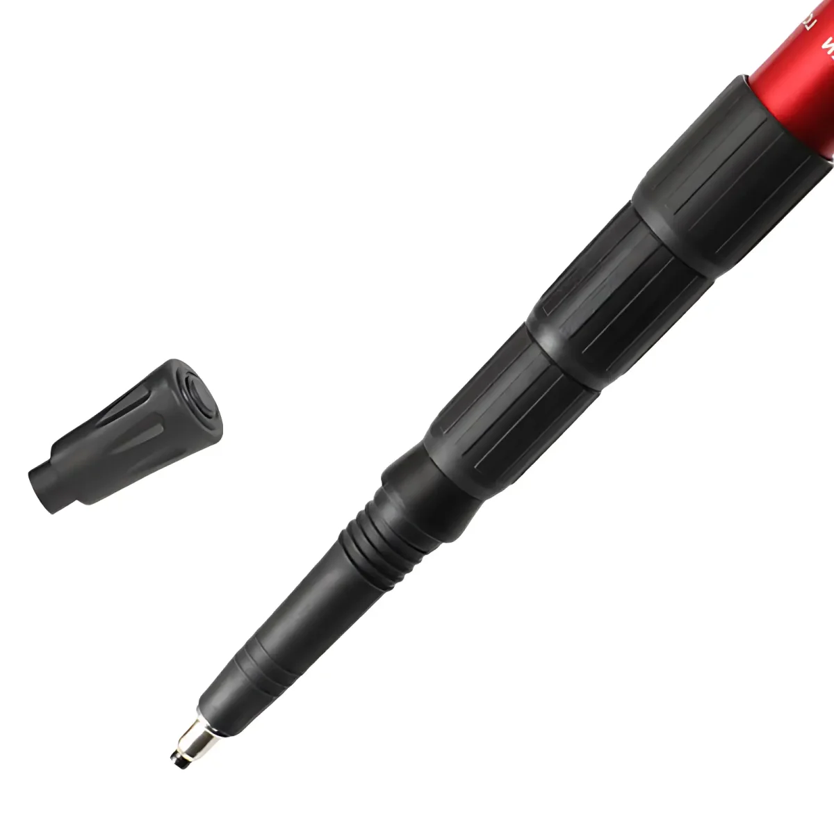 - Puntale tungsteno rinforzato: Punta in tungsteno con cappuccio protettivo in gomma per resistenza su roccia e asfalto durante utilizzo quotidiano intensivo