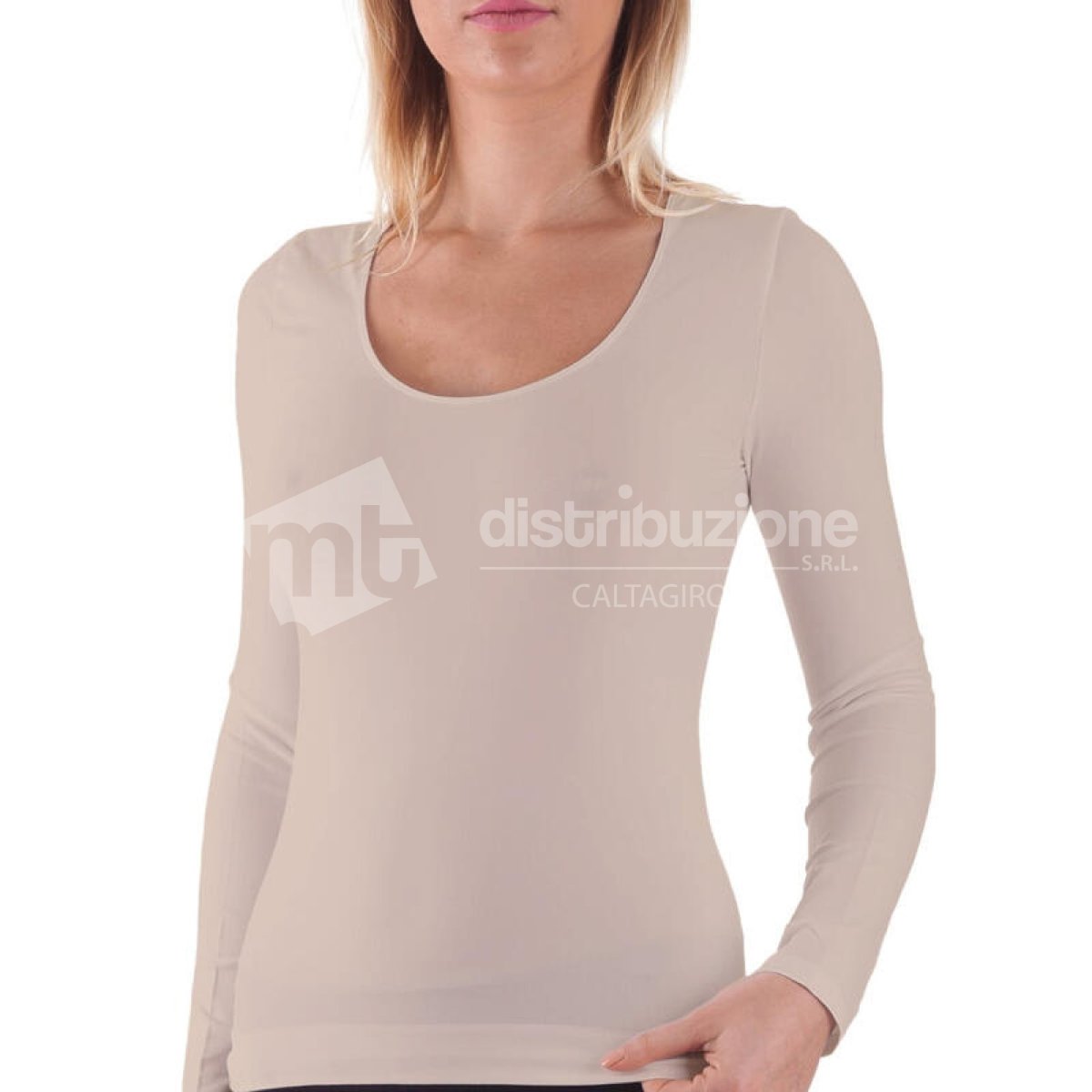 Maglia donna Bellissima con scollo americano in microfibra seamless, elasticizzato, senza cuciture, in tinta unita, manica lunga. Confezione da 1 pezzo. Disponibile nei colori Bianco, Blu, Natural e Nero nelle taglie S/M โ M/L โ L/XL.
