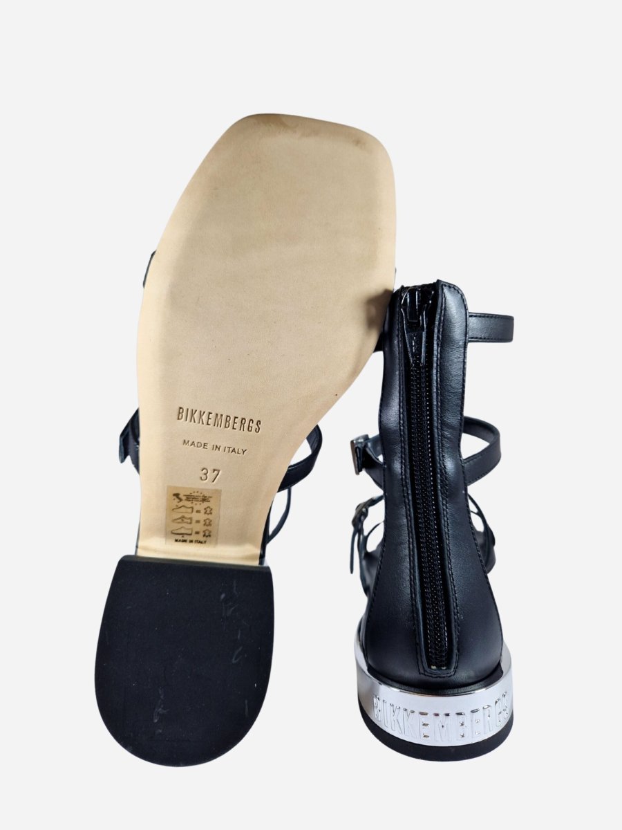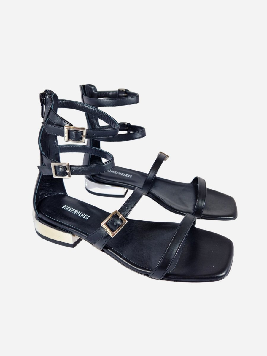 Sandali con cinturini alla schiava Bikkembergs. Calzature realizzate in vera pelle con interno in morbido cuoio. Tacchetto effetto specchio con logo.
