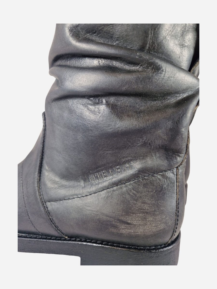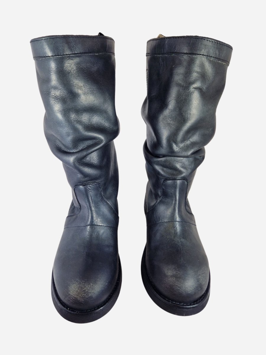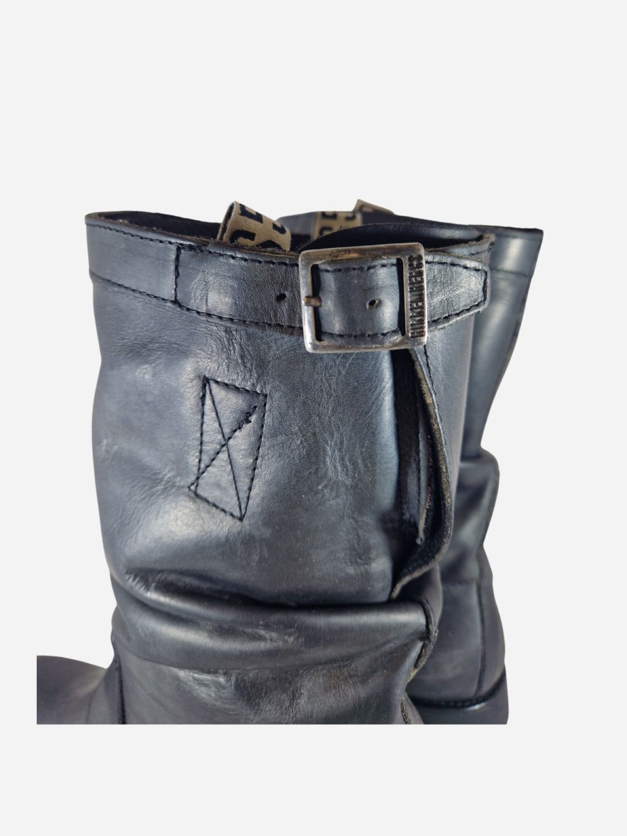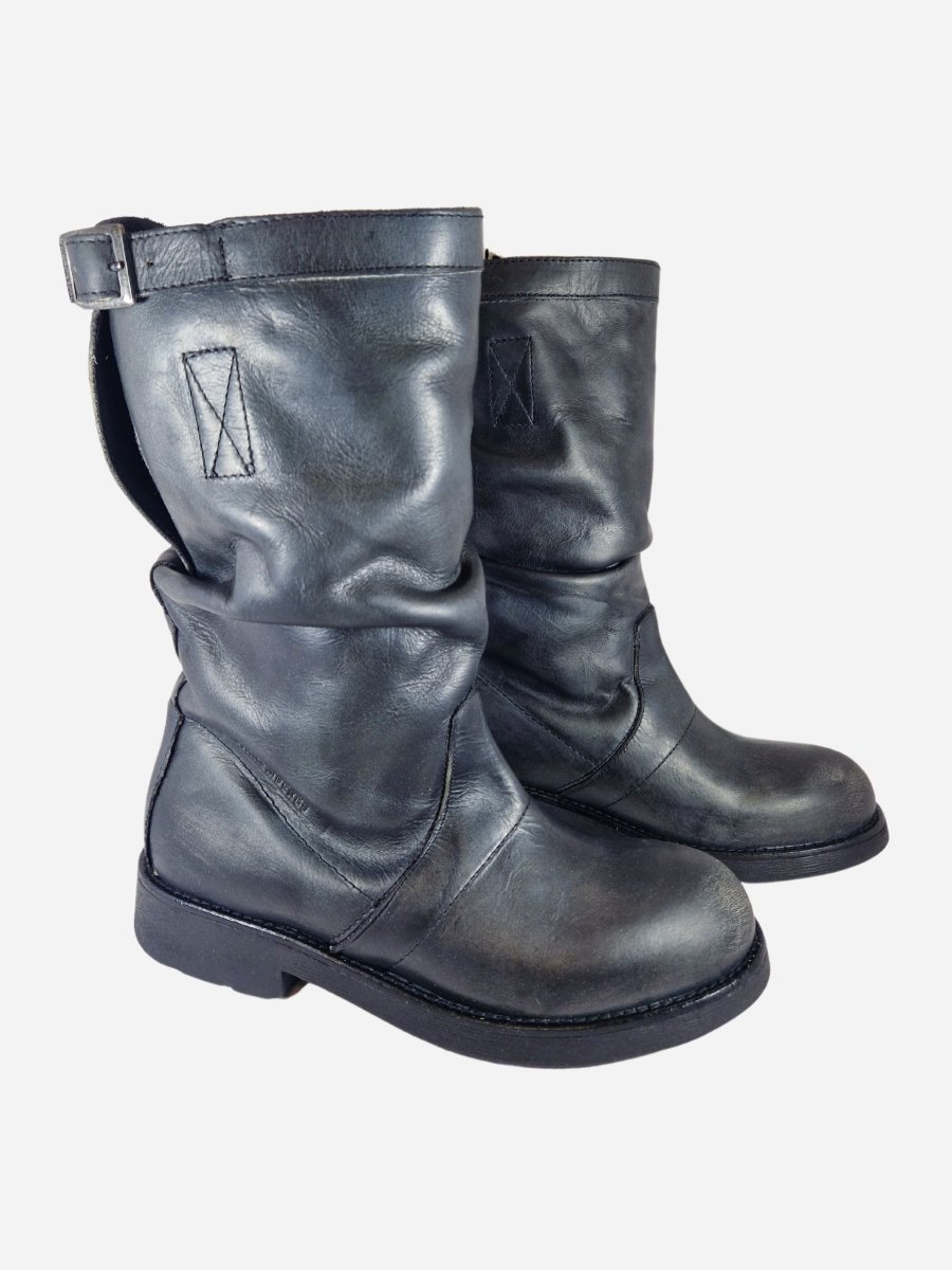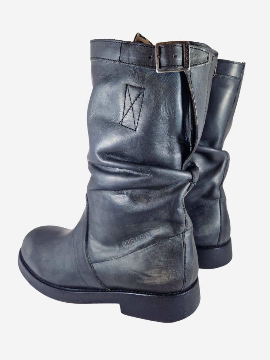 Stivali al polpaccio stile vintage di Bikkembergs. Realizzati in vera pelle effetto invecchiato dalla linea morbida, con interno in pelle e suola in gomma. Fibbia sul bordo superiore.