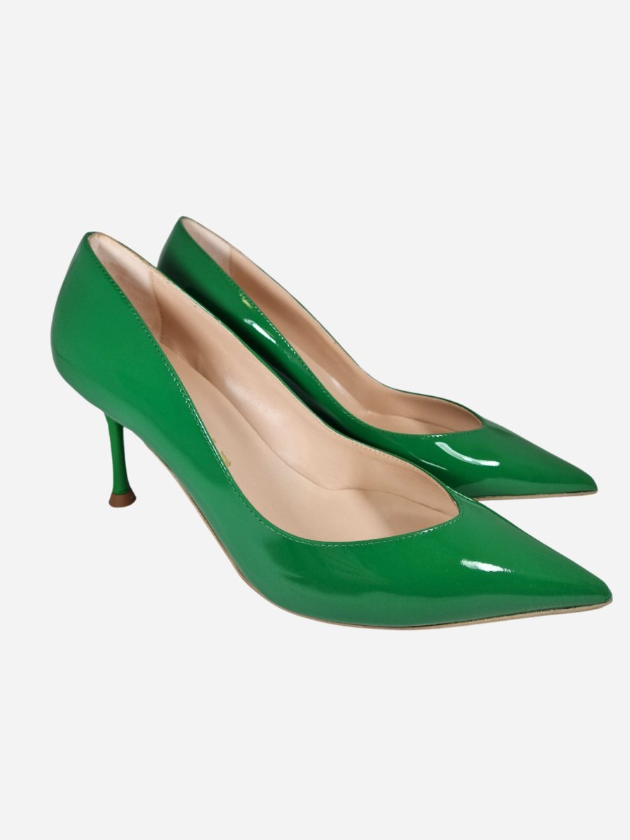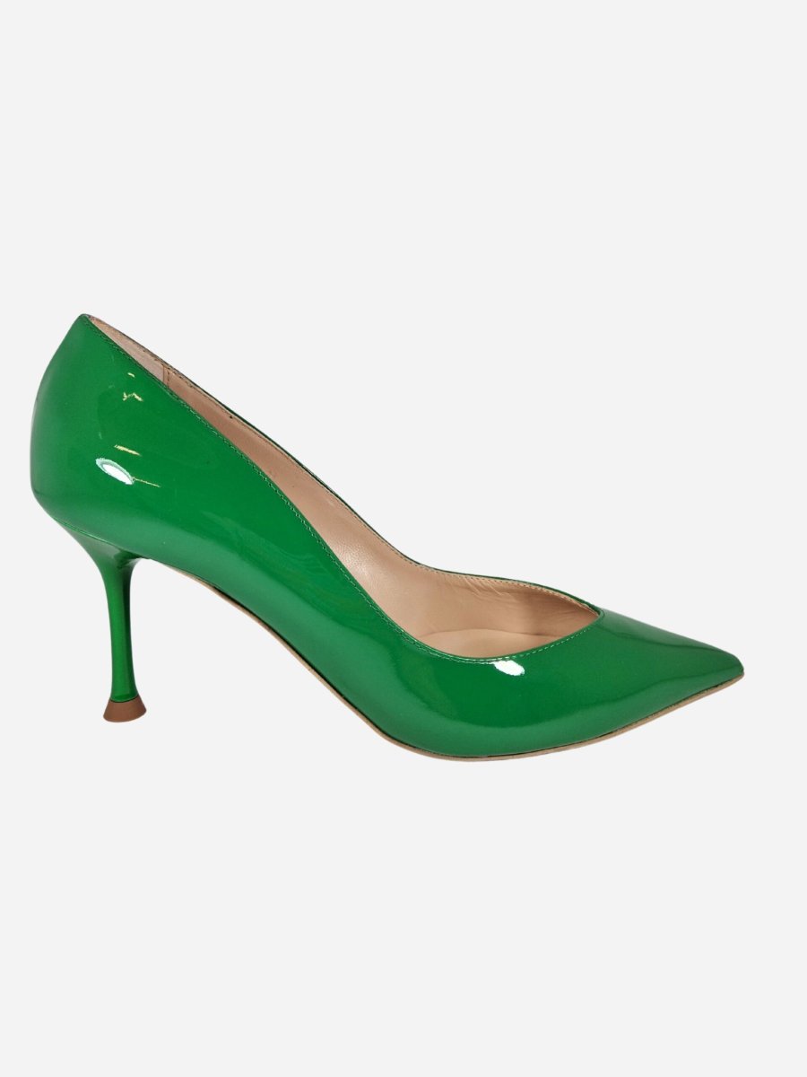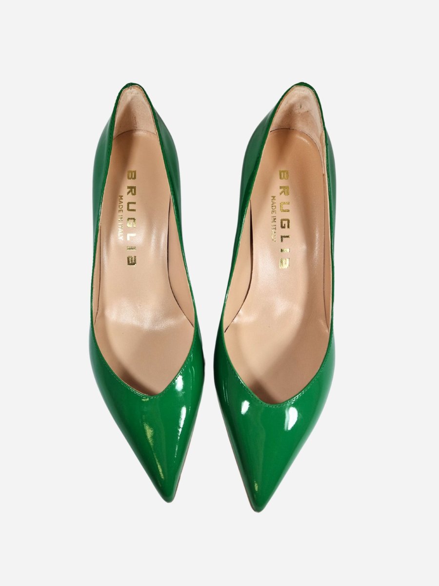 Décolleté by Bruglia. Calzature realizzate in vera pelle verniciata, con fondo in cuoio e suola in materiale sintetico. Tacco a spillo di 7 cm. Made in Italy