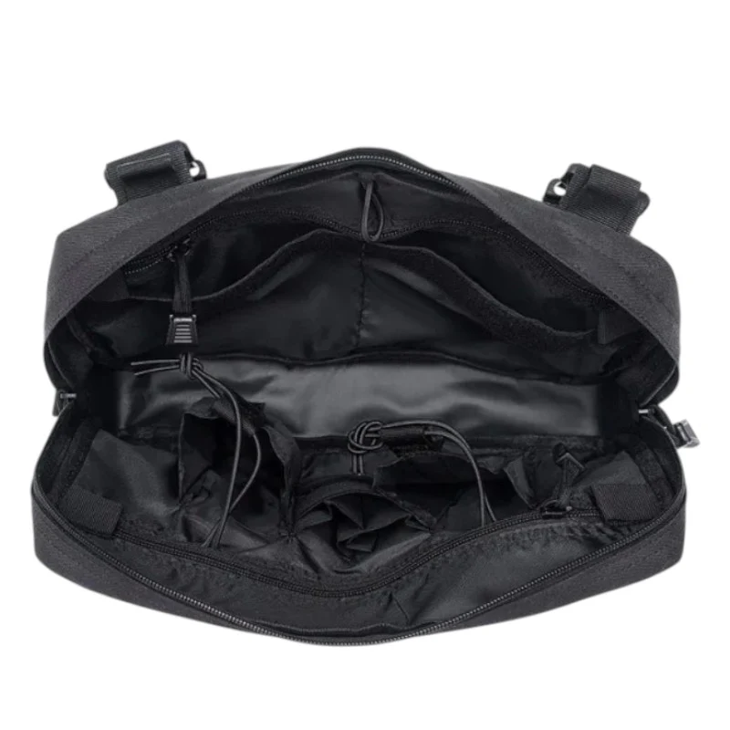 Tessuto Oxford 600D impermeabile: Materiale testato per 10.000 cicli di sfregamento resiste a pioggia e fango mantenendo contenuto asciutto Peso contenuto 450 grammi: Struttura leggera con capacitร per tablet 8 pollici, powerbank e accessori essenziali Design chest rig versatile: Configurazione a pettorina tattica utilizzabile sia in contesto urbano che outdoor 3 compartimenti con tasche interne: […]