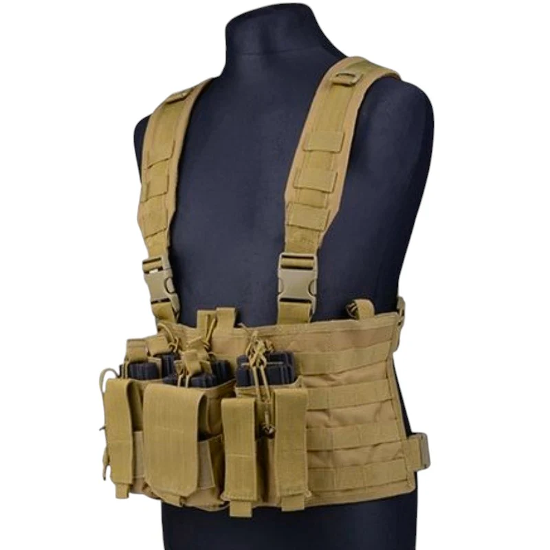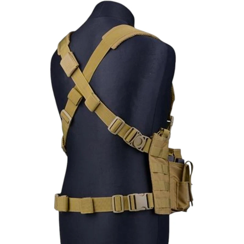 - Configurazione chest rig modulare: Design portamunizioni garantisce distribuzione carico su torace per accesso rapido equipaggiamento