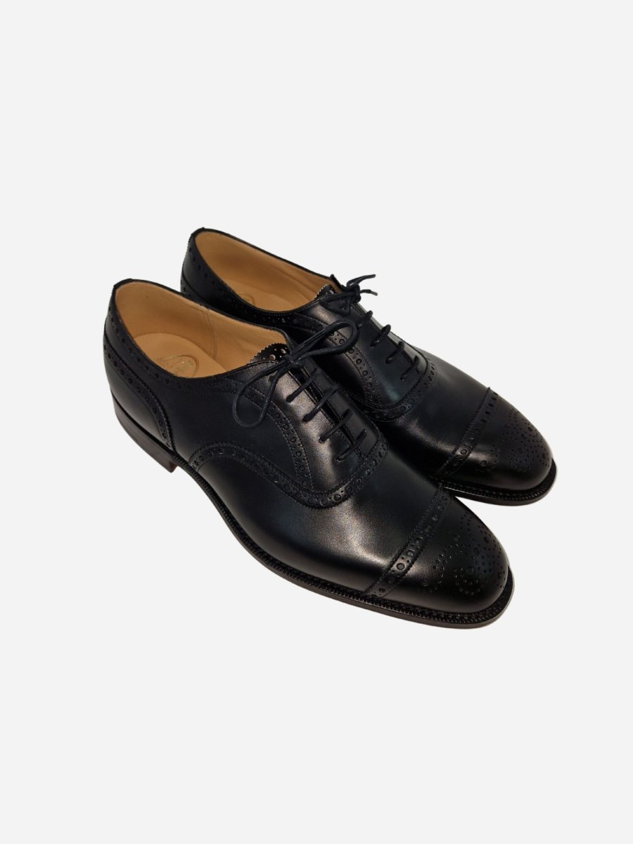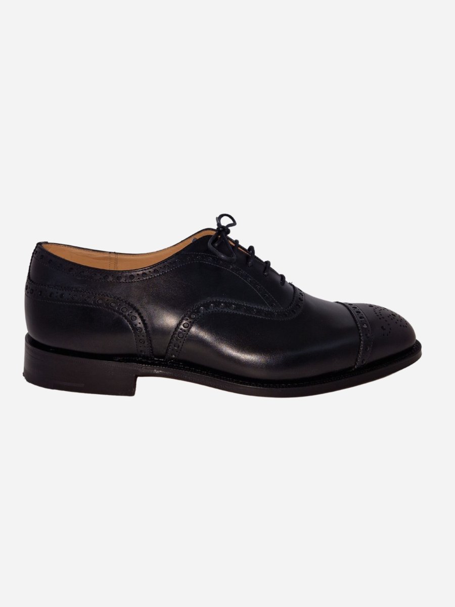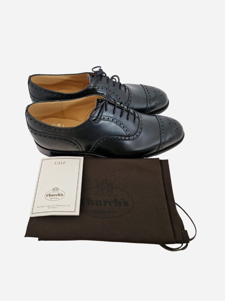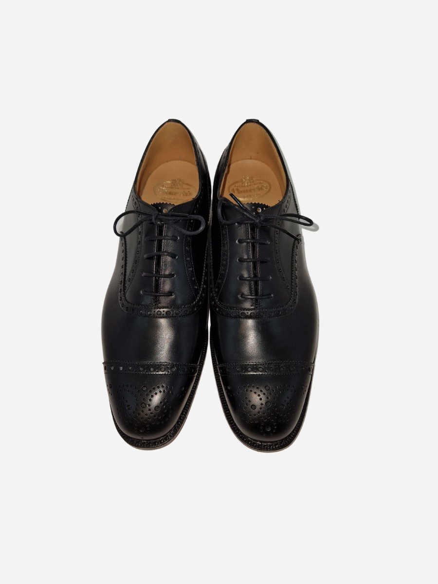 Scarpa stringata DIPLOMAT 173 by Church’s. Scarpe dalla linea classica ed elegante, realizzate in vera pelle di vitello con suola in cuoio e arricchite sulla punta da un motivo decorativo. Le informazioni sulla scarpa sono riportate a mano sulla fodera. Chiusura con lacci in pelle e occhielli ciechi. Finitura naturale ottenuta con cere applicate a mano per esaltare la bellezza della pelle di vitello. Nella confezione รจ presente la dustbag. Made in England