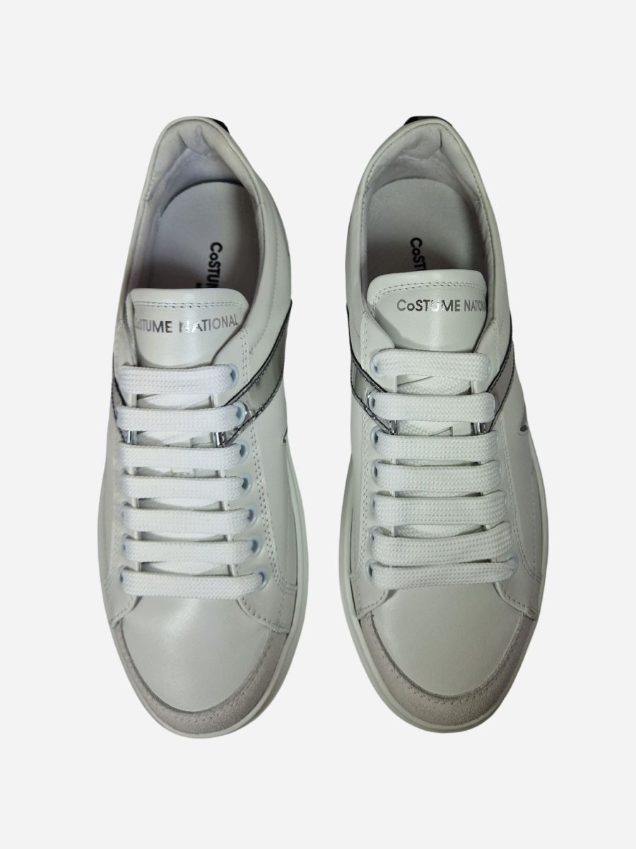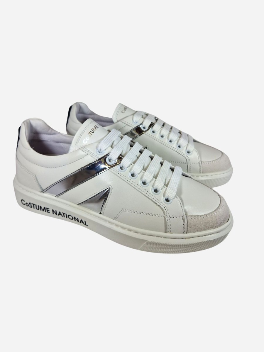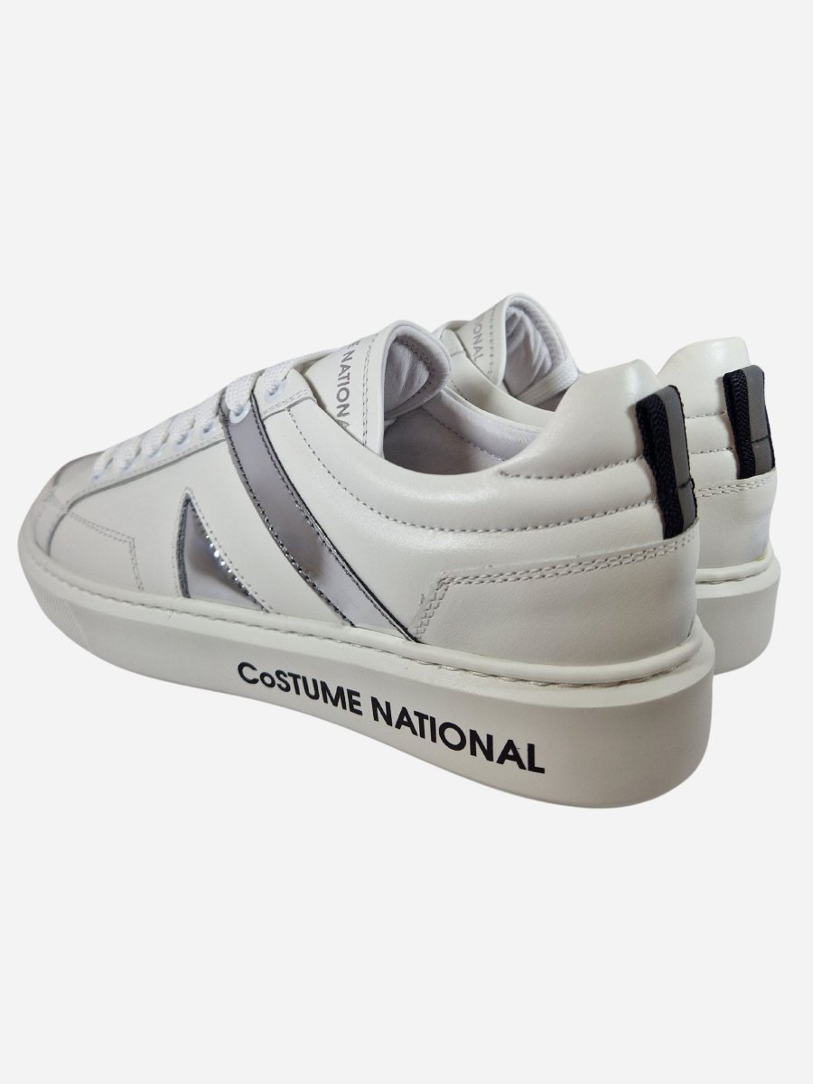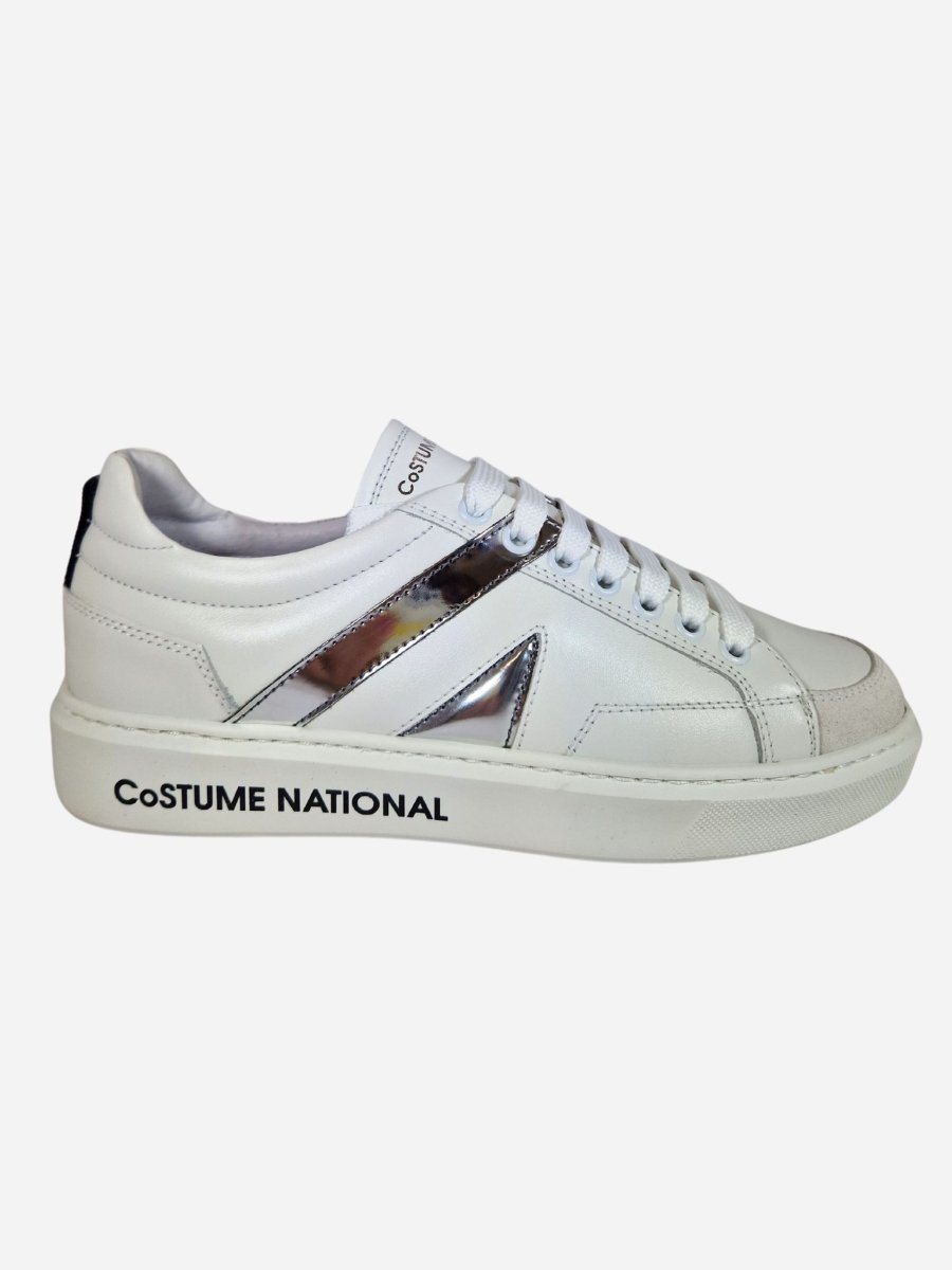 Sneakers 16045 by Costume National. Scarpe dalla linee classiche e versatili, realizzate in pelle con suola in gomma e caratterizzate da decorazioni laterale argentate. Chiusura con lacci. Made in Italy