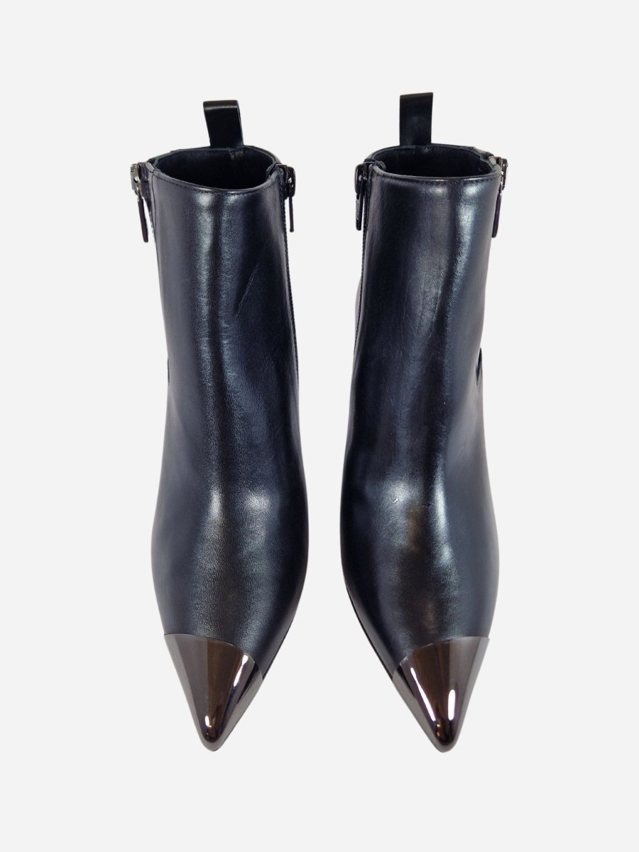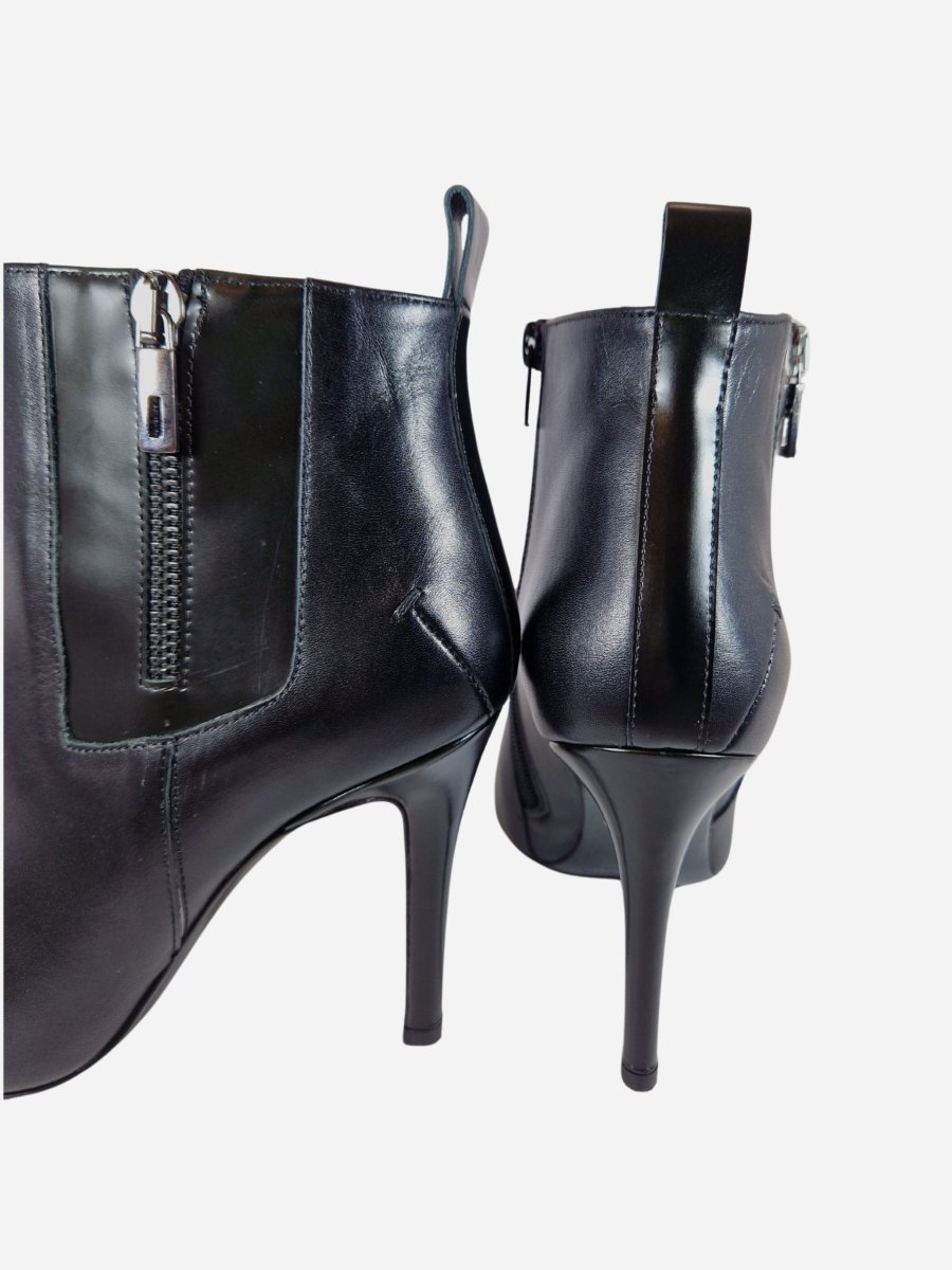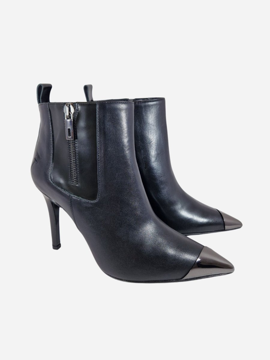 Tronchetto by Costume National. Calzature realizzate in vera pelle, arricchite da una doppia zip laterale e punta metallica a contrasto. Tacco a spillo di 7 cm. Made in Italy