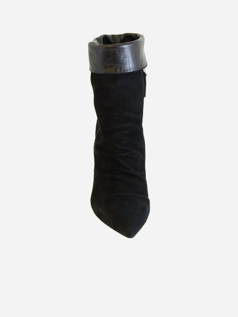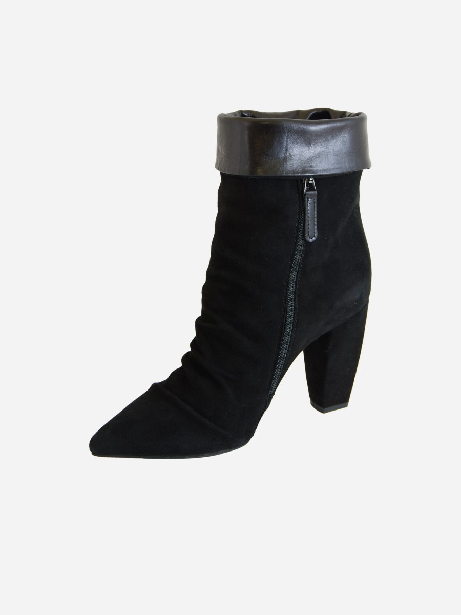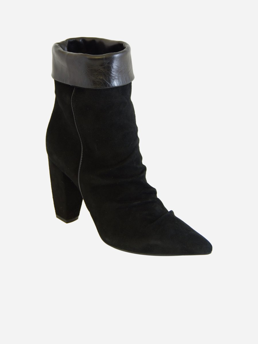 Tronchetto di Couture Milano. Tronchetto in camoscio nero con possibilitร di risvolto mettendo a vista la pelle nera oppure lasciare la lunghezza totale in camoscio. Chiusura con cerniera laterale. Tacco di 9 cm.