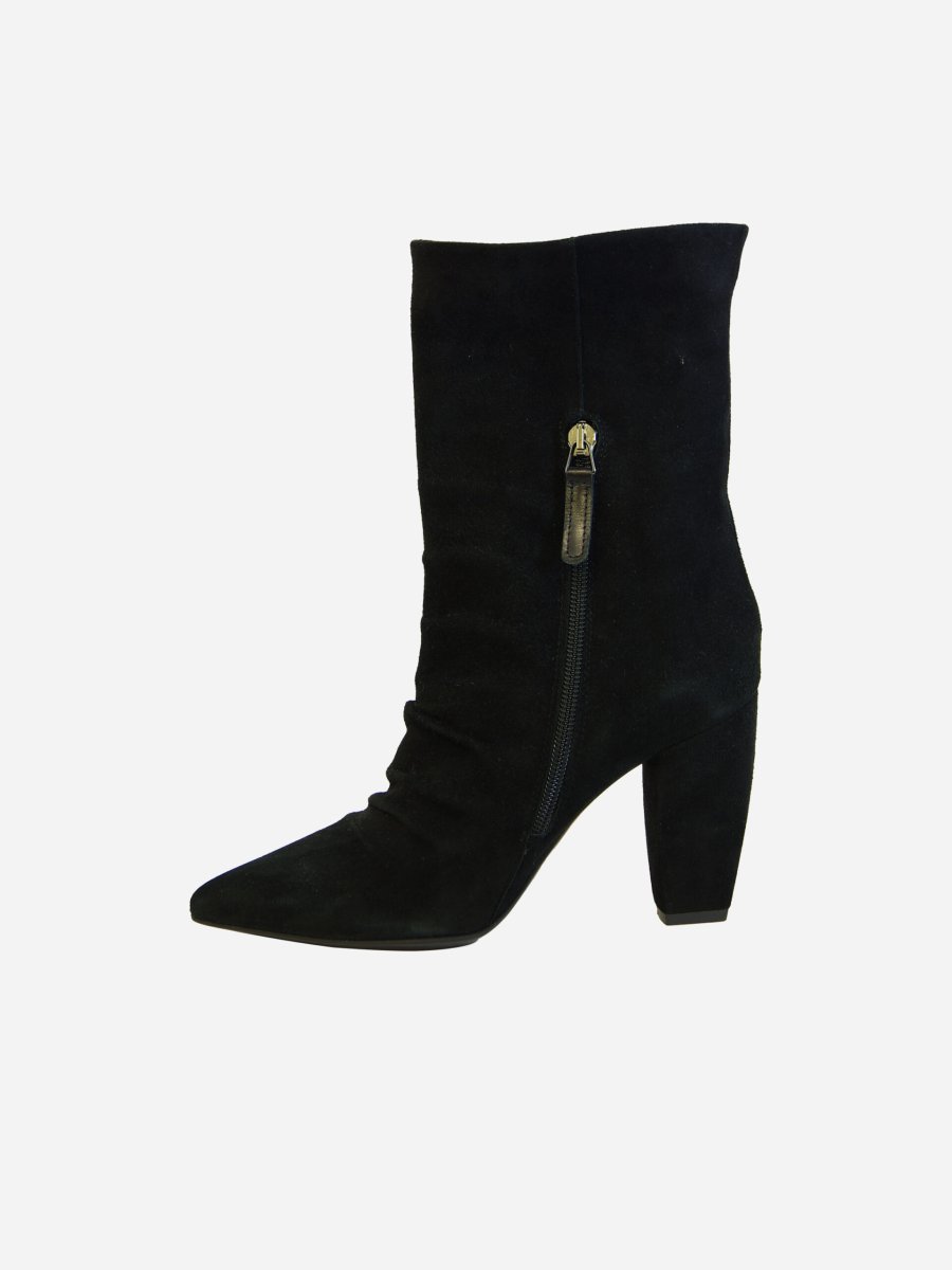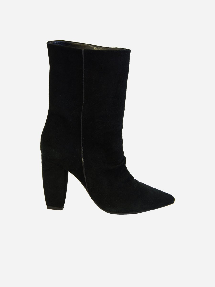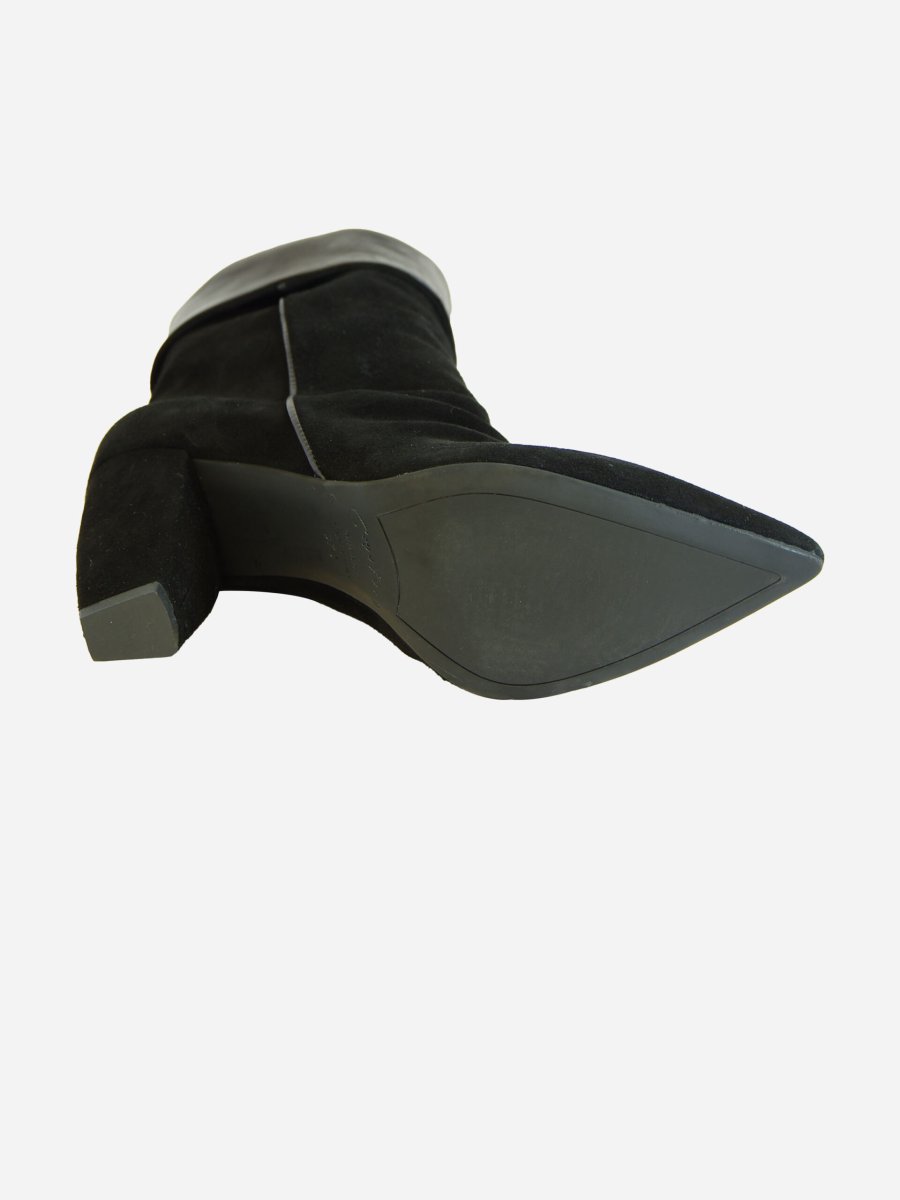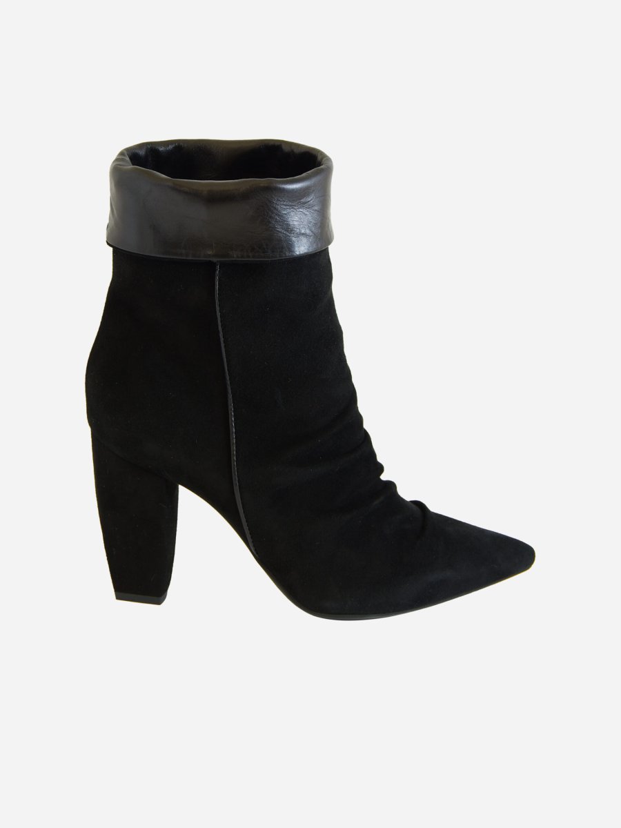 Tronchetto di Couture Milano. Tronchetto in camoscio nero con possibilitร di risvolto mettendo a vista la pelle nera oppure lasciare la lunghezza totale in camoscio. Chiusura con cerniera laterale. Tacco di 9 cm.