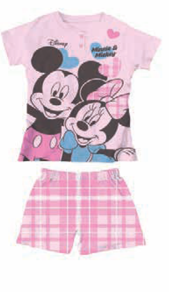 Pigiama bimba Disney con fantasia Minnie e Topolino, maglia manica corta con bottoncini, pantalone corto con stampa a quadretti. Composizione: 100% cotone. Confezione da 1 pezzo. Disponibile nei colori Fucsia e Rosa nelle taglie 3/4 anni โ 5/6 anni โ 7/8 anni โ 9/10 anni.