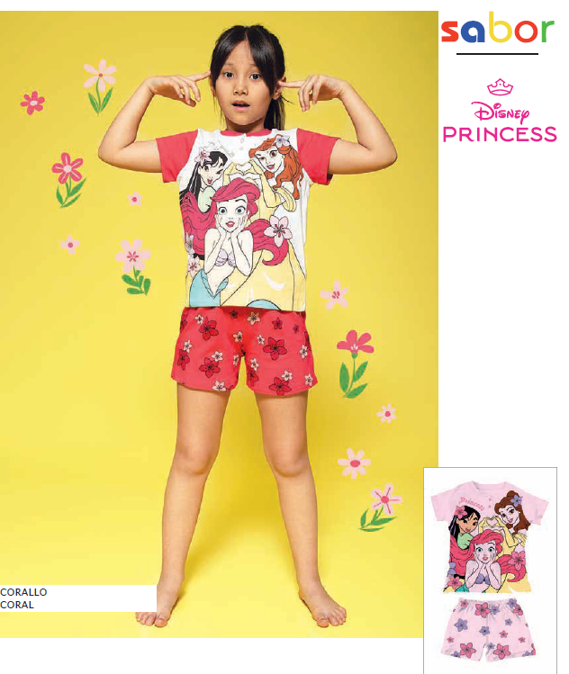 Pigiama bimba Disney con fantasia Princess, maglia manica corta con bottoncini, pantalone corto con fantasia. Composizione: 100% cotone. Confezione da 1 pezzo. Disponibile nei colori Corallo e Rosa nelle taglie 3/4 anni โ 5/6 anni โ 7/8 anni โ 9/10 anni.
