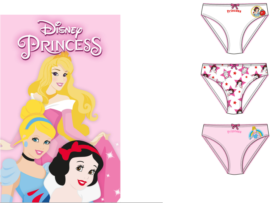 Slip bimba Disney, in cotone elasticizzato fantasia Princess. Confezione da 3 pezzi. Disponibile nel colore Assortito nelle taglie 2/3 anni โ 4/5 anni โ 6/7 anni.