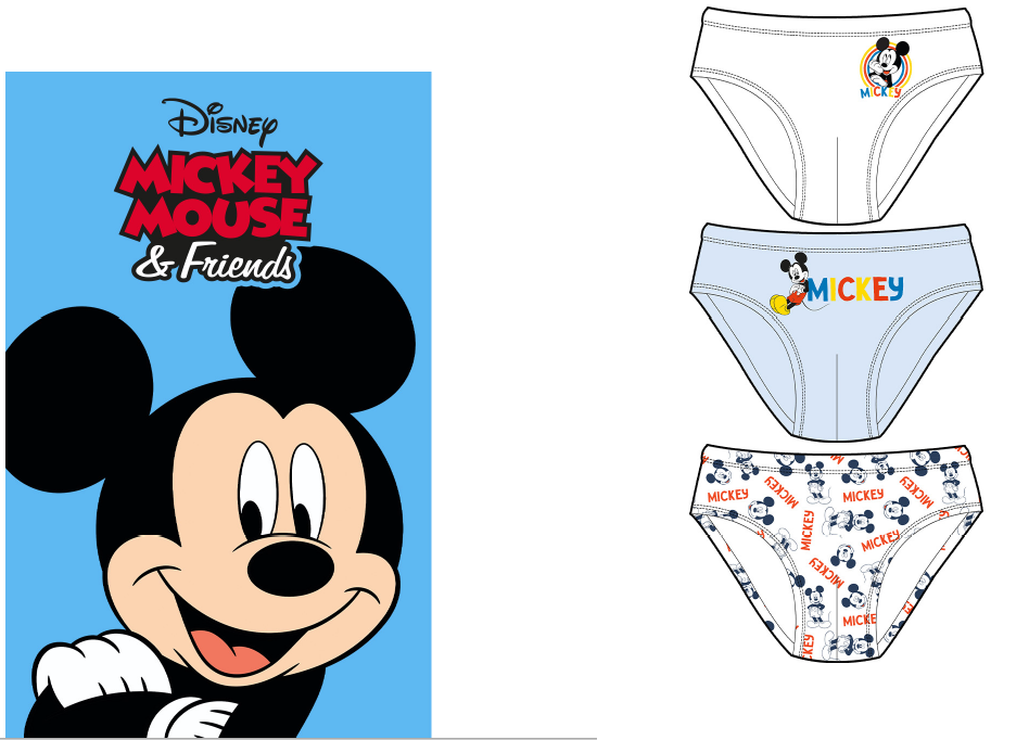 Slip bimbo Disney, in cotone elasticizzato fantasia Topolino. Confezione da 3 pezzi. Disponibile nel colore Assortito nelle taglie 2/3 anni – 4/5 anni – 6/7 anni.
