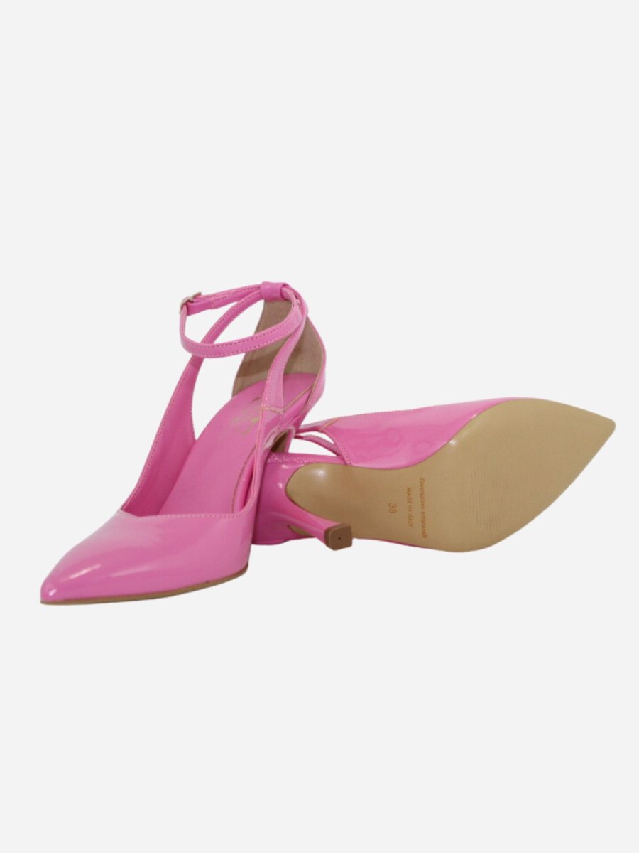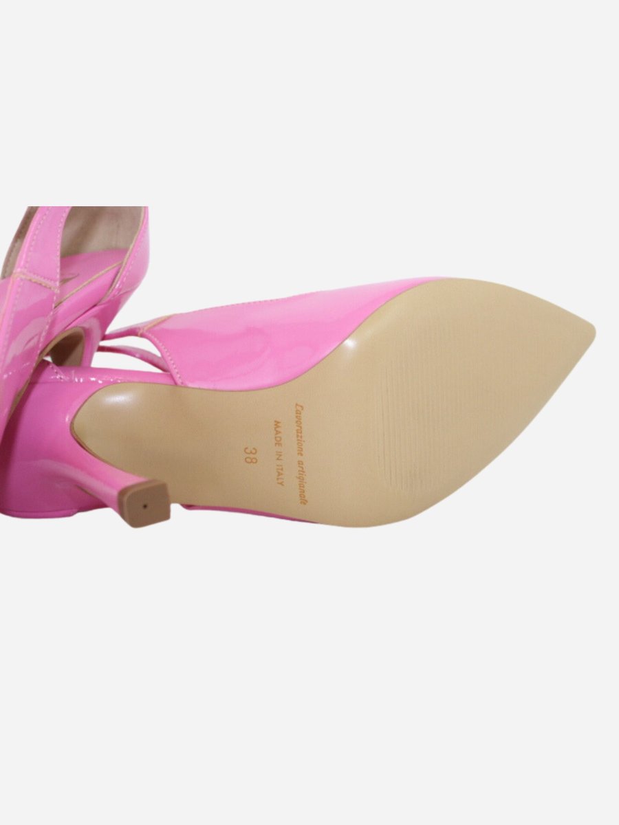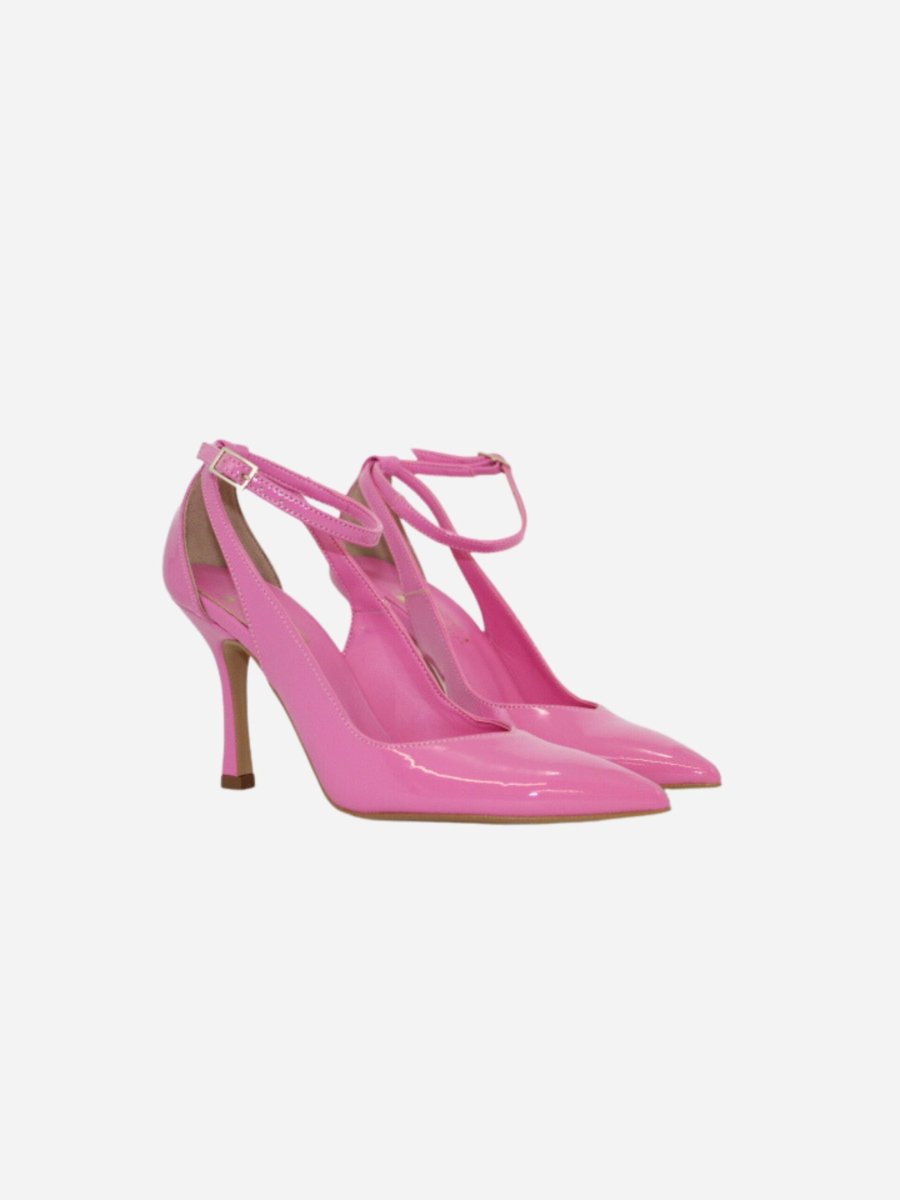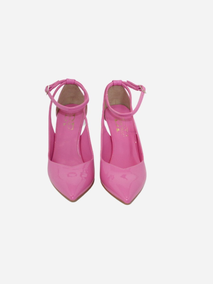 Décolléte by Divine Follie. Scarpe realizzate in pelle verniciata con tacco di 10 cm. Fondo in cuoio. Chiusura con cinturino. Made in Italy Divine Follie è il brand di calzature che vuole rappresentare l’essenza dinamica e sensibile della natura femminile con prodotti alla moda, sia casual che eleganti.