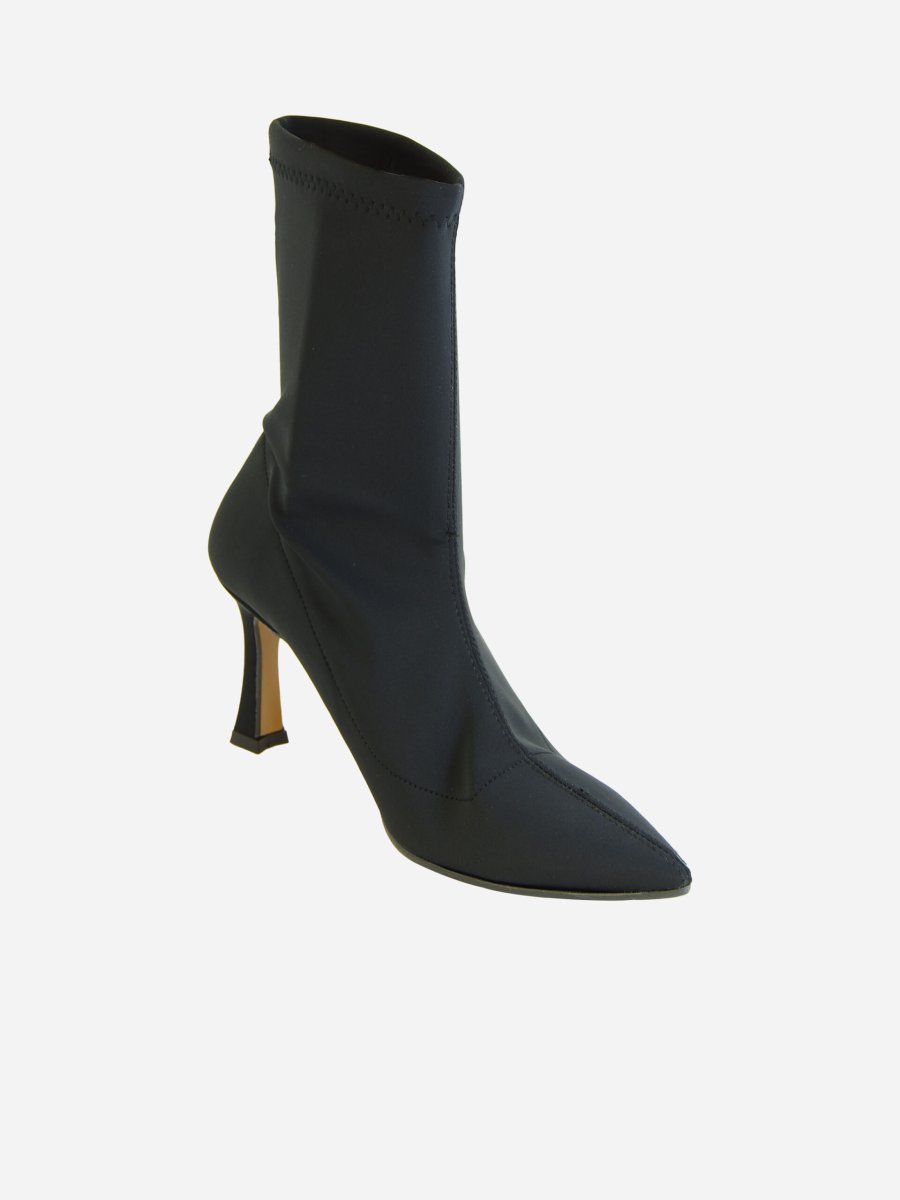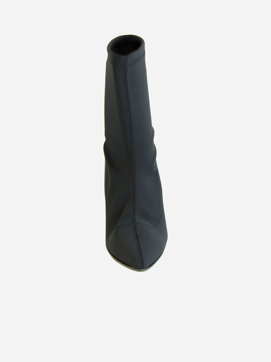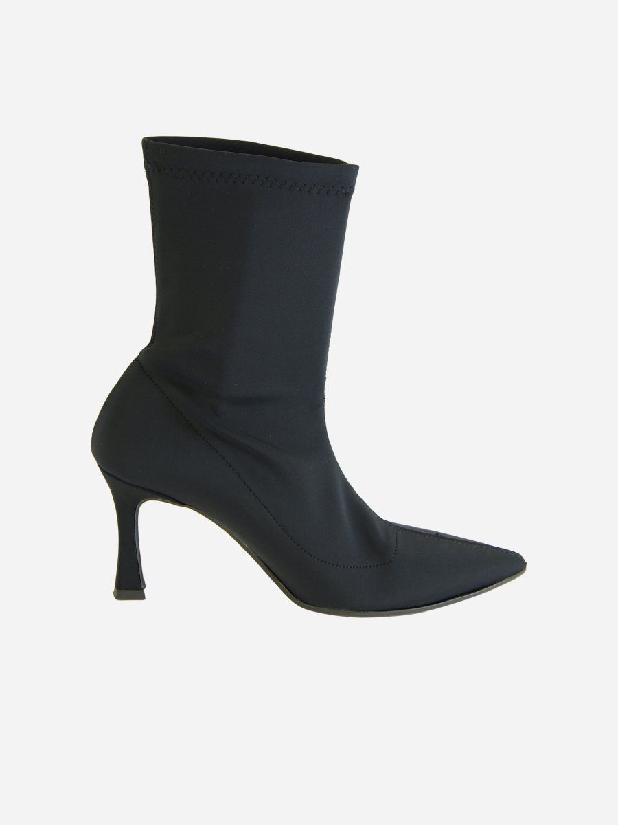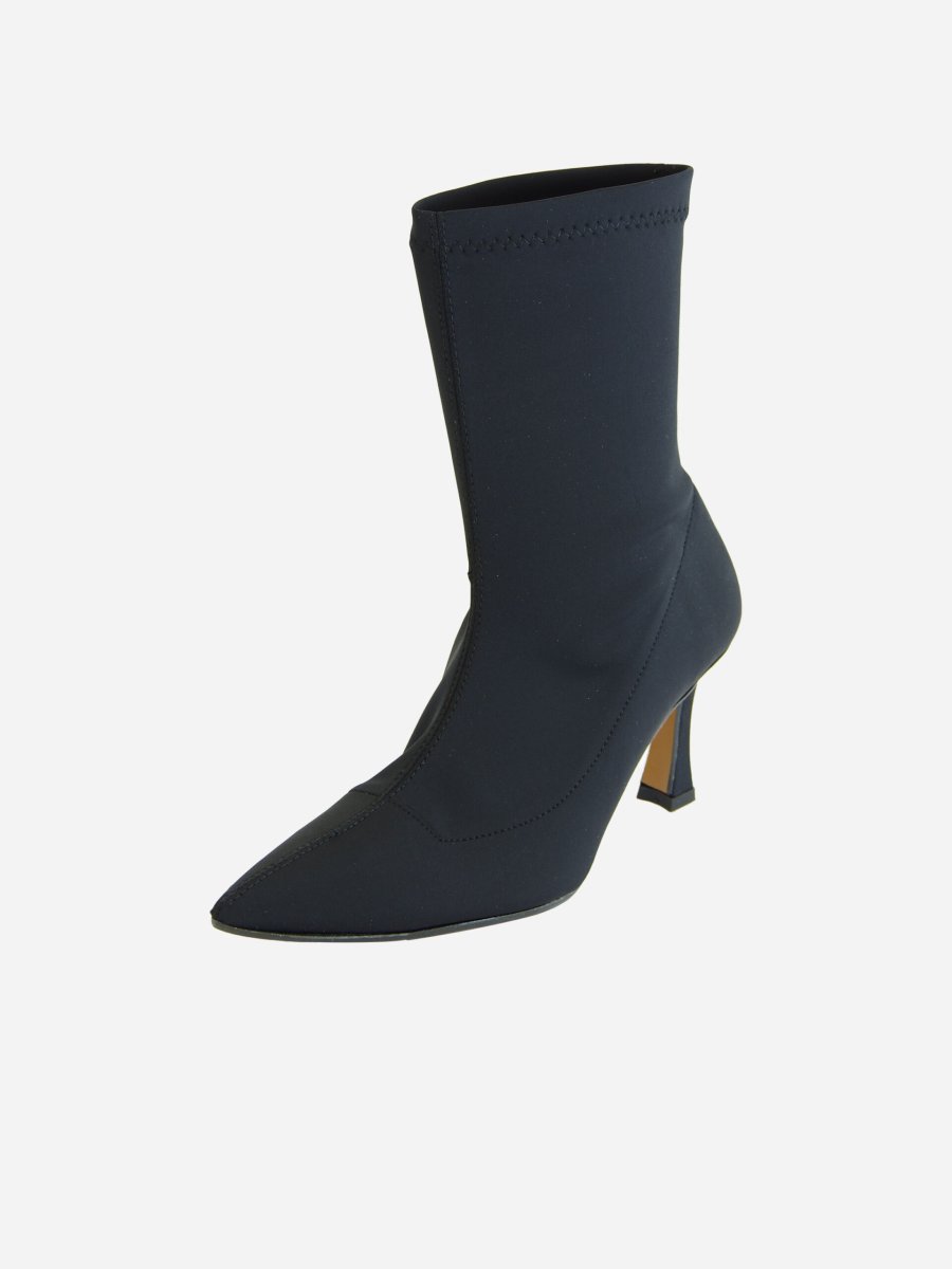 Tronchetto di Divine Follie. Tronchetto in tessuto elasticizzato di colore nero, a punta. Tacco 7 cm e gambale 13 cm. Cuciture a vista. Made in Italy Divine Follie รจ il brand di calzature che vuole rappresentare l’essenza dinamica e sensibile della natura femminile con prodotti alla moda, sia casual che eleganti.