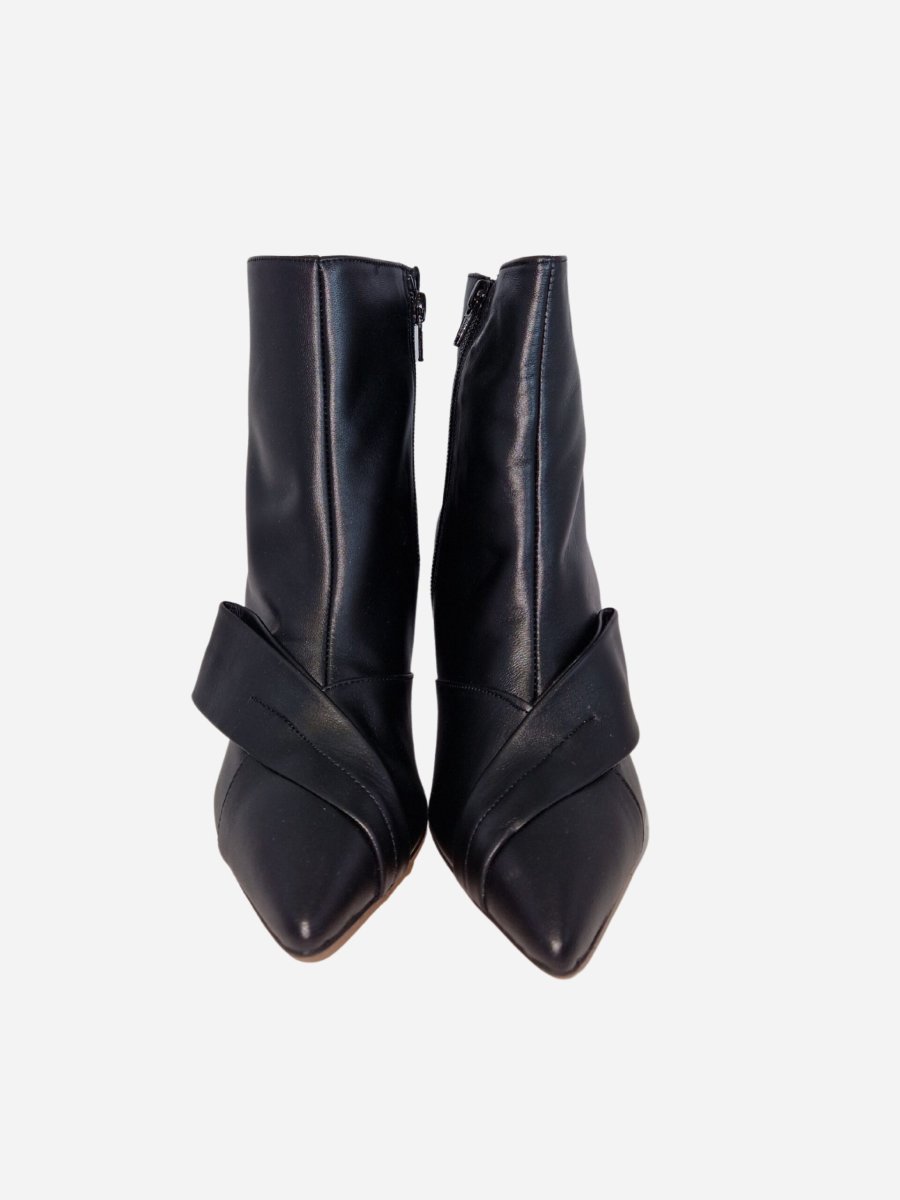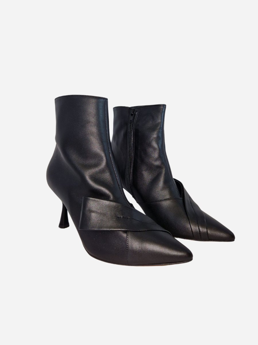 Tronchetto by Divine Follie. Scarpe realizzate in vera pelle con tacco di 8 cm. Dettaglio fascia in pelle. Fondo in cuoio. Chiusura con cerniera laterale. Made in Italy