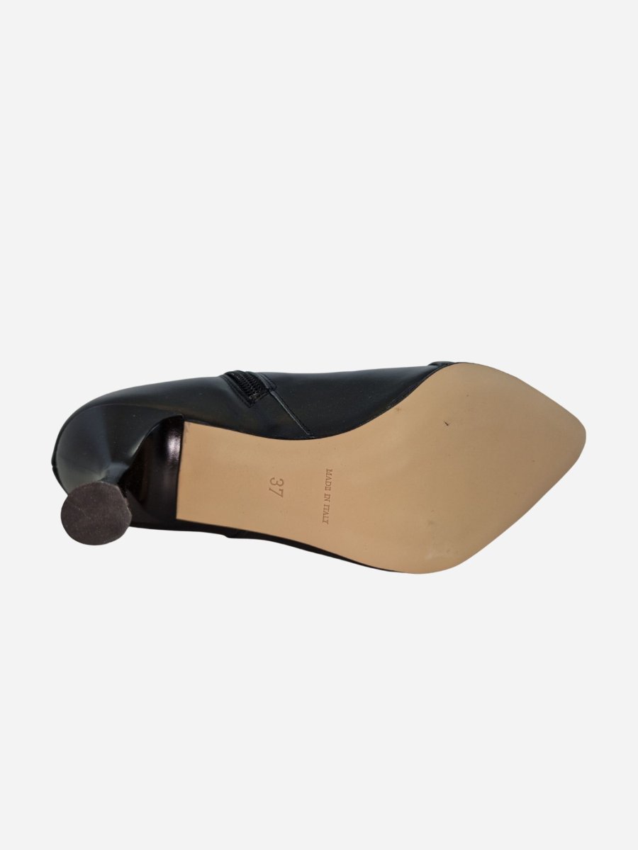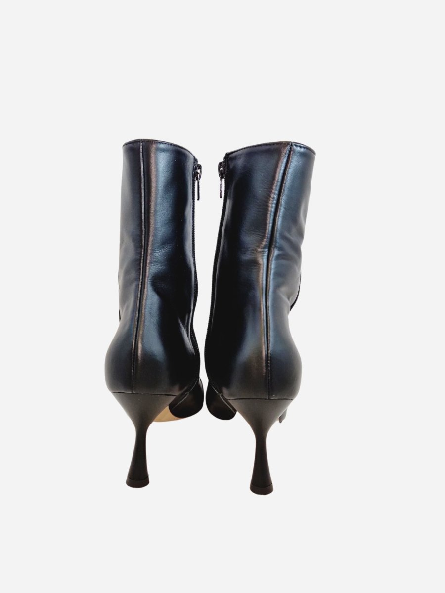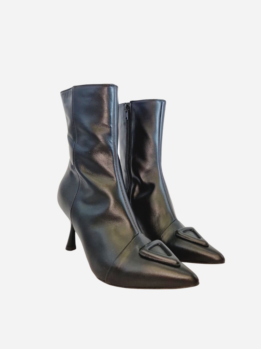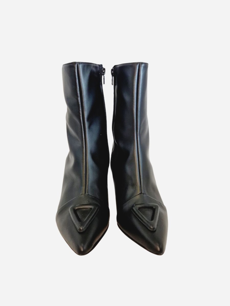 Tronchetto by Divine Follie. Scarpe realizzate in vera pelle con fondo in cuoio e suola in materiale sintetico. Comodo tacco a rocchetto di 7 cm. Punta con dettaglio triangolare in rilievo ton sur ton. Chiusura con cerniera laterale. Made in Italy.
