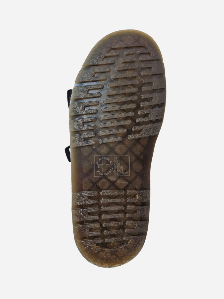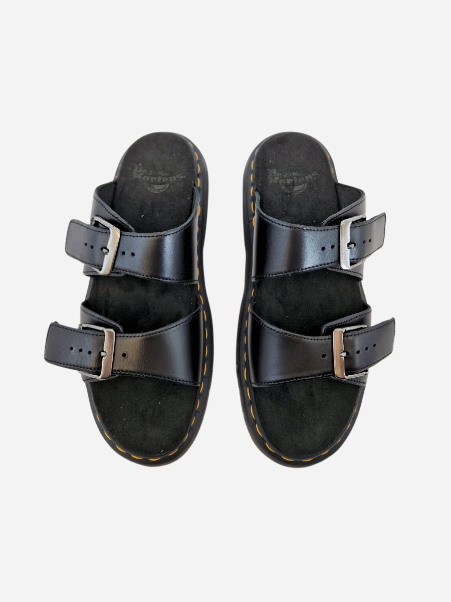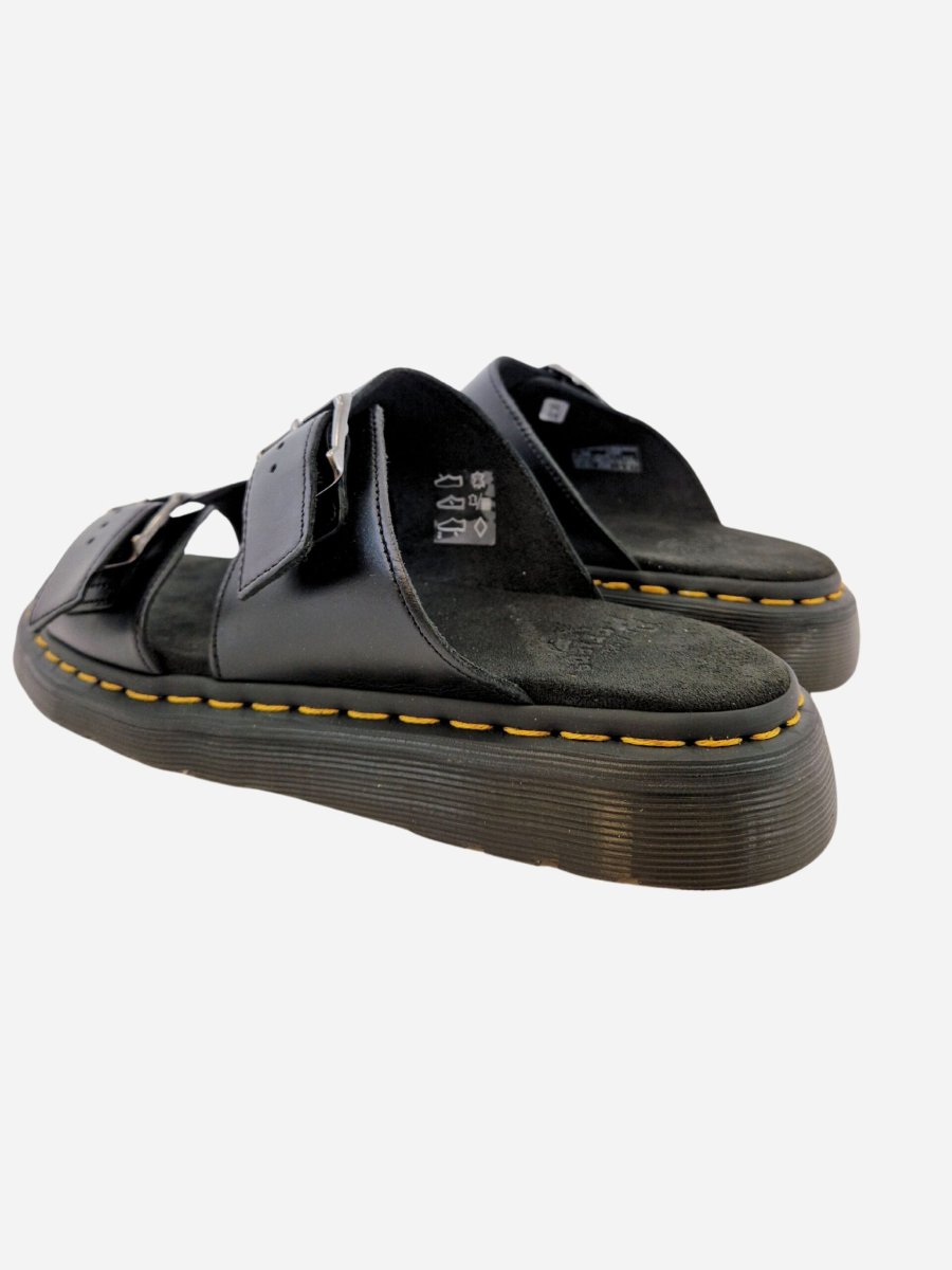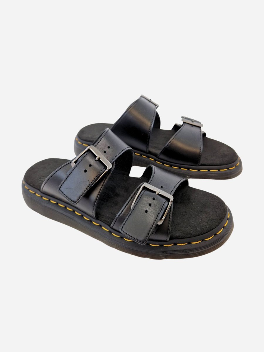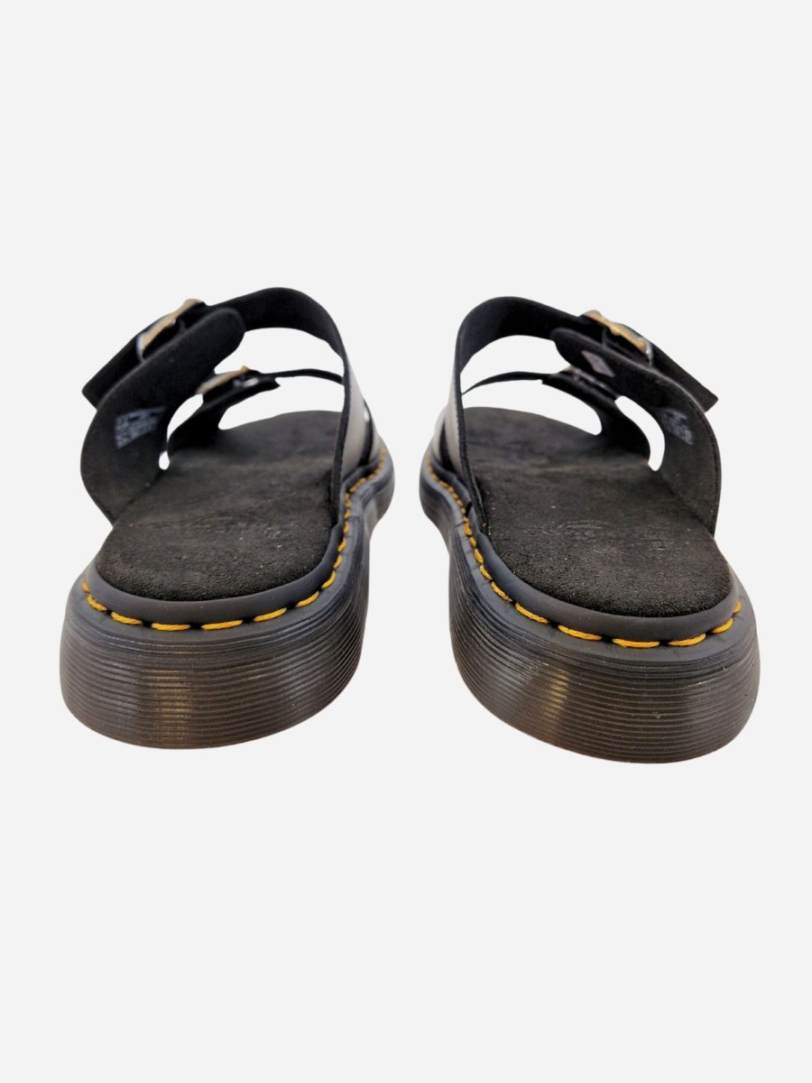 Ciabatta JOSEF by Dr. Martens. Ciabatte con doppia fascia con fibbia realizzate in vera pelle con morbido fondo in pelle e tessuto e suola in PVC. Cuciture gialle a contrasto, segno distintivo del brand.