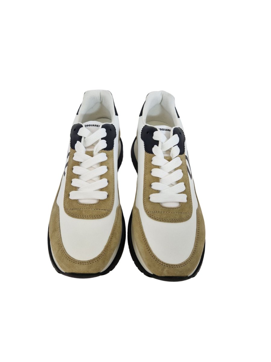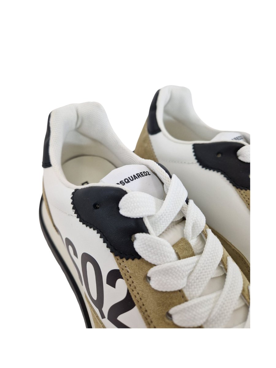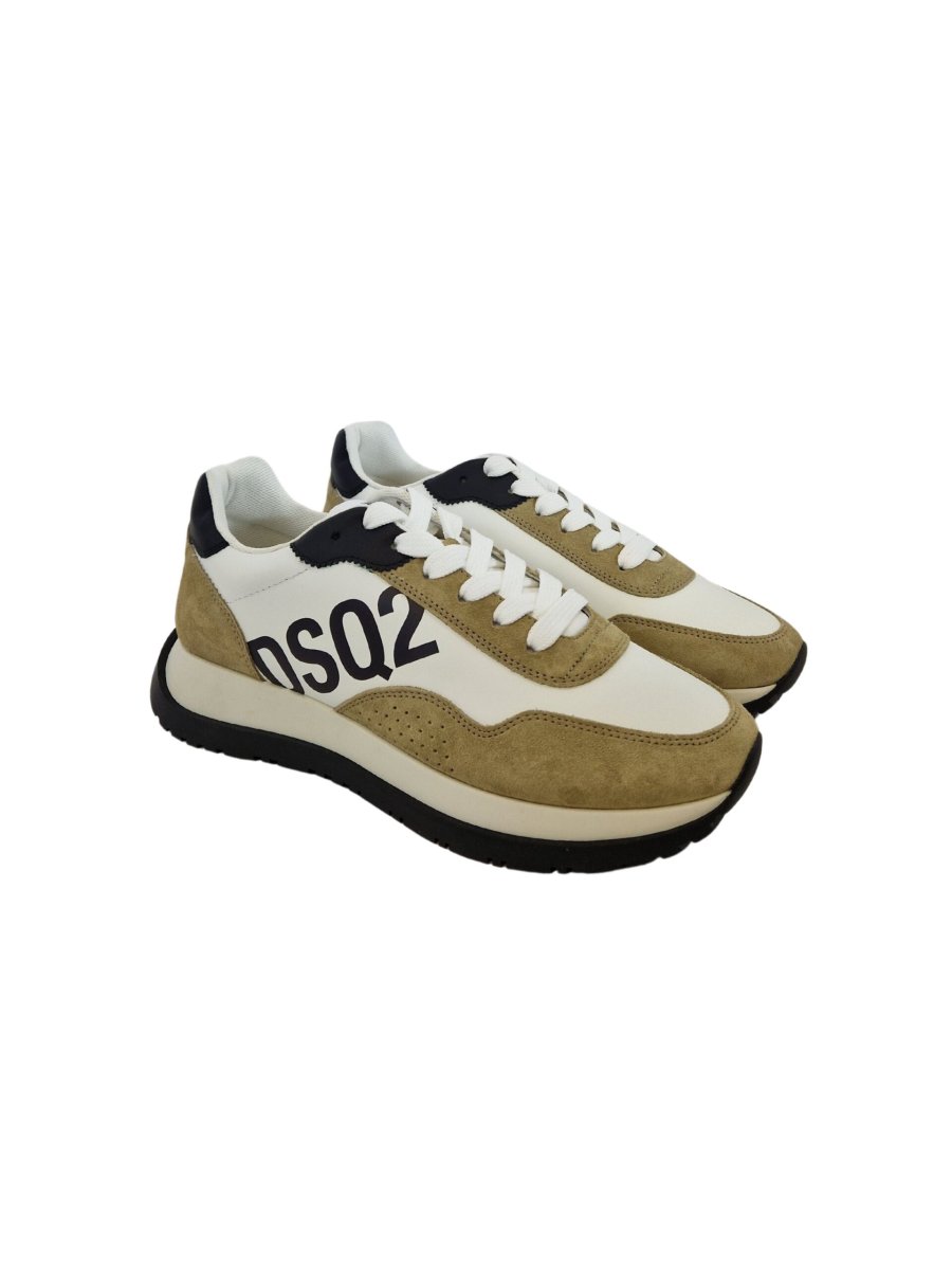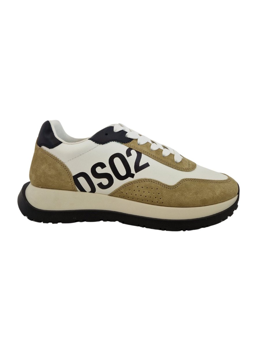 Sneakers Running by DSQUARED2. Scarpe realizzate in vera pelle con inserti in suede beige e suola in gomma.ย Maxi logo laterale stampato. Chiusura con lacci.