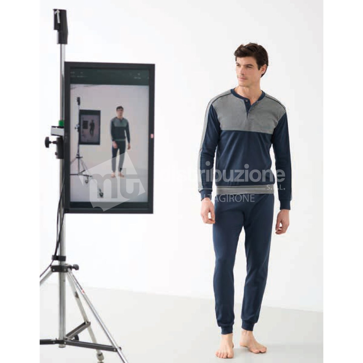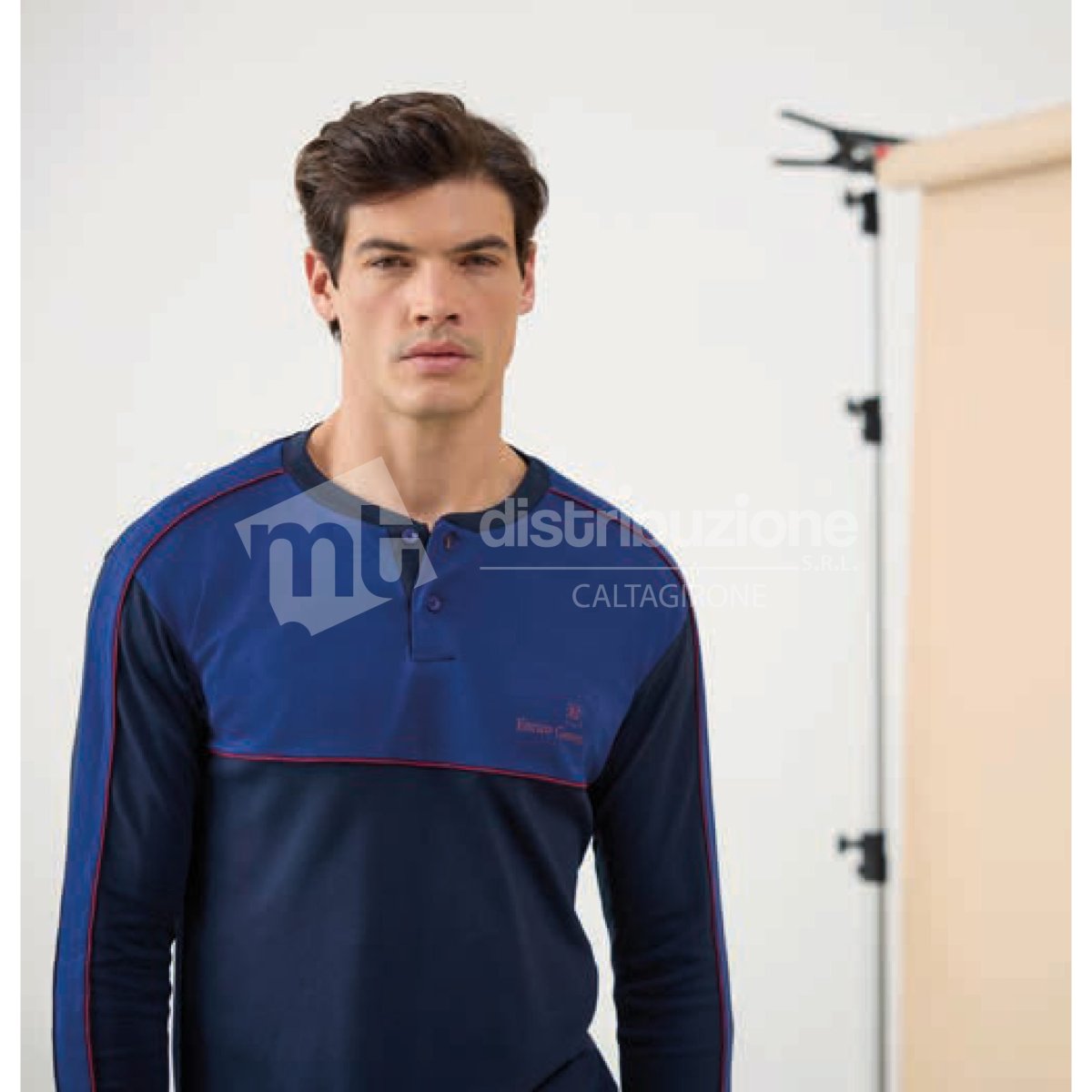 Pigiama uomo Enrico Coveri autunno/inverno, maglia manica lunga a serafino con due bottoncini, pantalone lungo in tinta unita, il tutto con polsini. Composizione: 100% cotone interlock. Confezione da 1 pezzo. Disponibile nei colori Blu e Piombo nelle taglie 46 – 48 – 50 – 52.