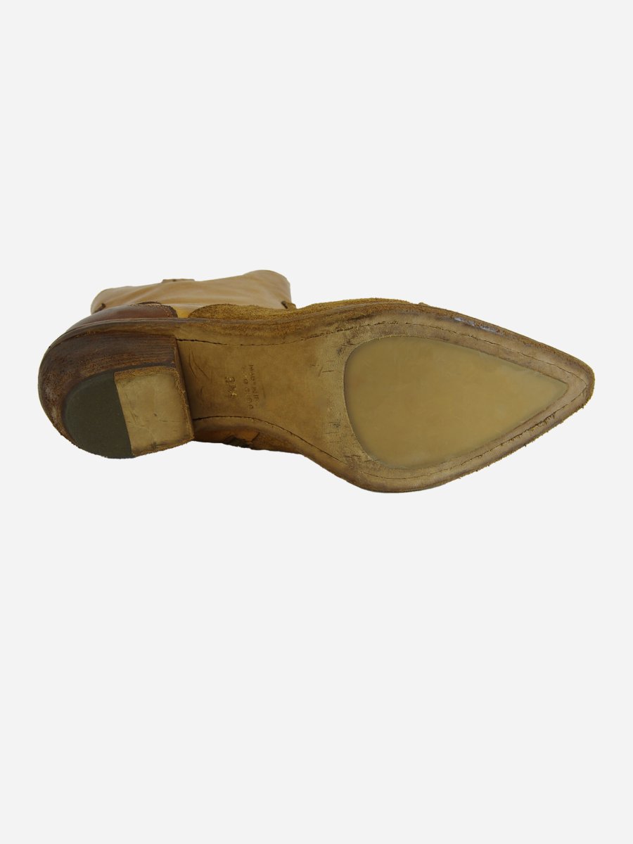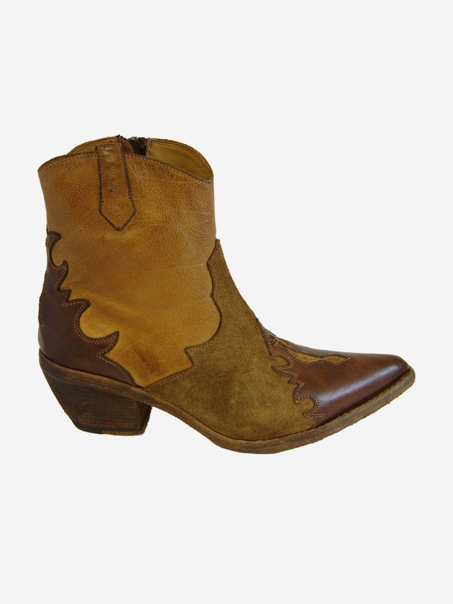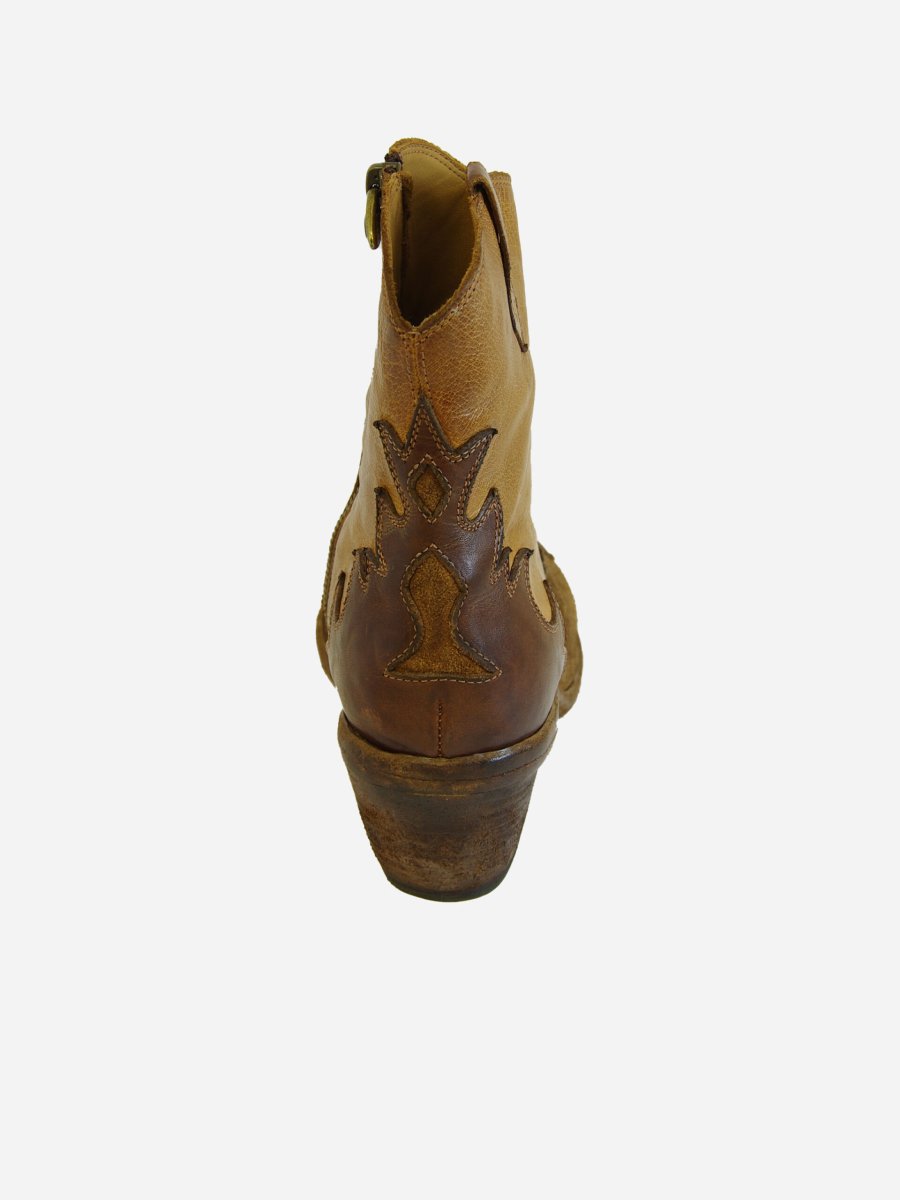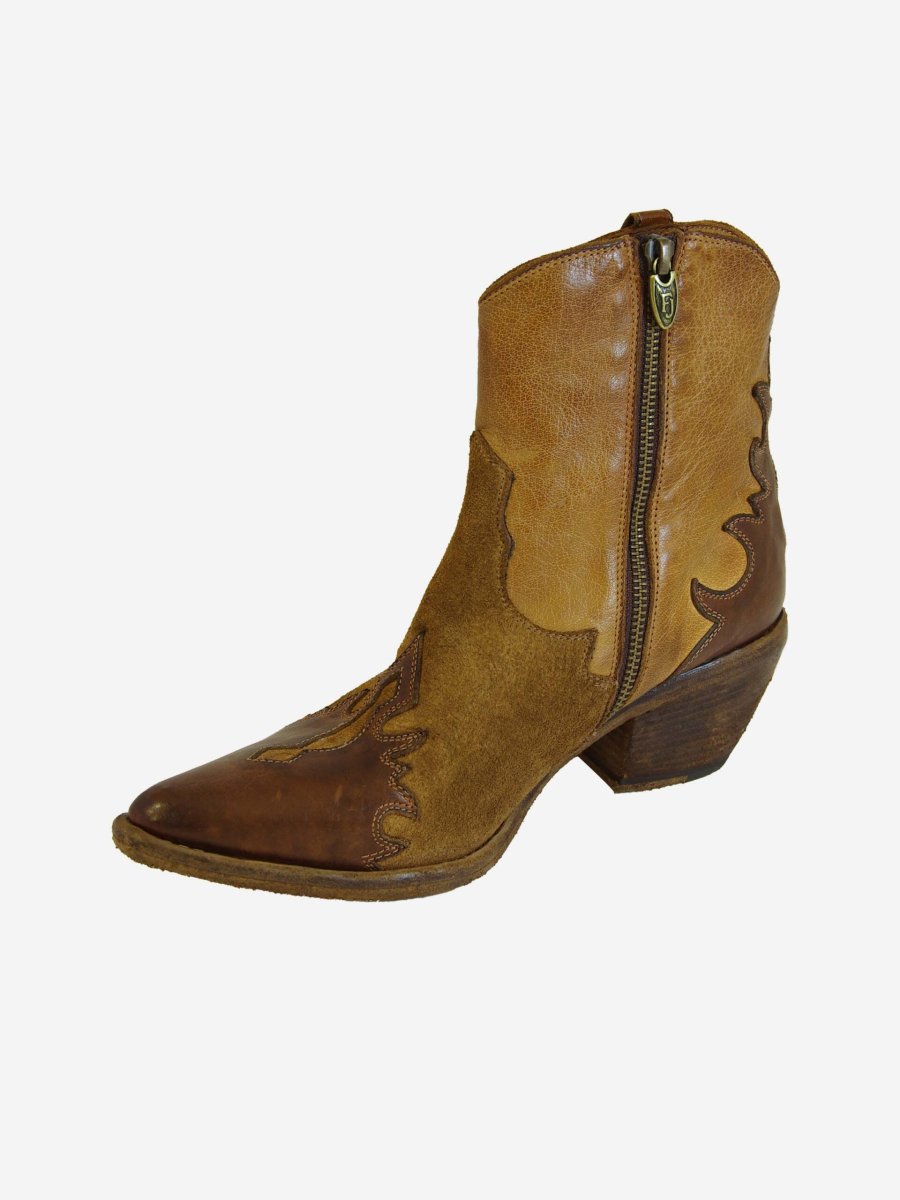Stivale di Fauzian Jeunesse. Stivale in color cuoio modello texano con zip interna e tacco di legno ricoperto in cuoio. Lavorato A MANO.