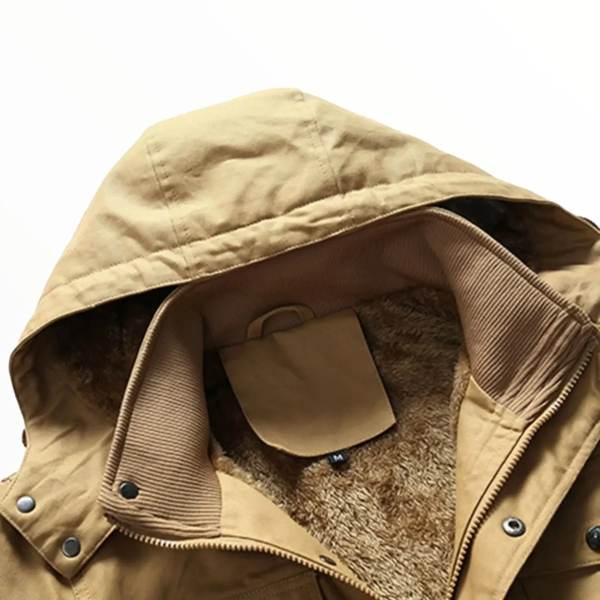 - Fodera in pile termico integrale: Rivestimento interno spesso esteso fino a cappuccio fornisce isolamento termico per utilizzo in condizioni fredde