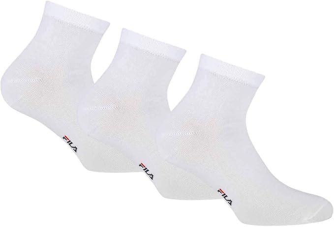 Calzino corto Fila unisex in morbido cotone elasticizzato. Confezione da 3 paia. Disponibile dalla taglia 35/38 alla 43/46.
