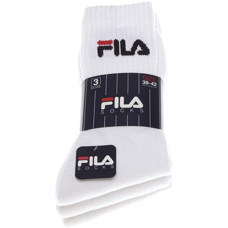 Calza corta tennis fila di cotone unisex, logo ricamato e con forma del piede in spugna. Confezione da 3 paia. Disponibile dalla taglia 35/38 alla 43/46.
