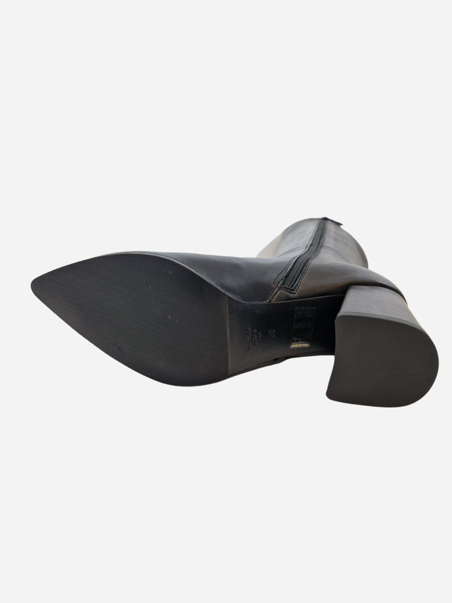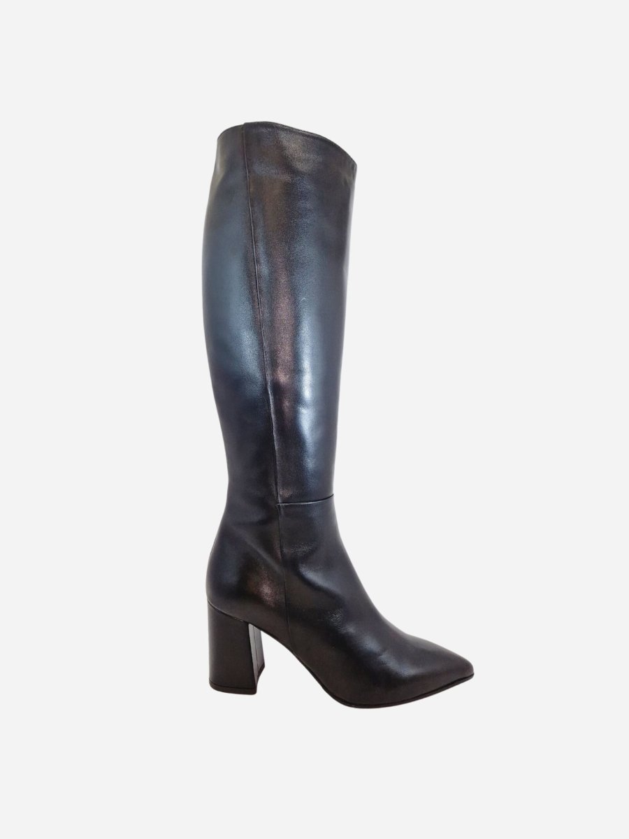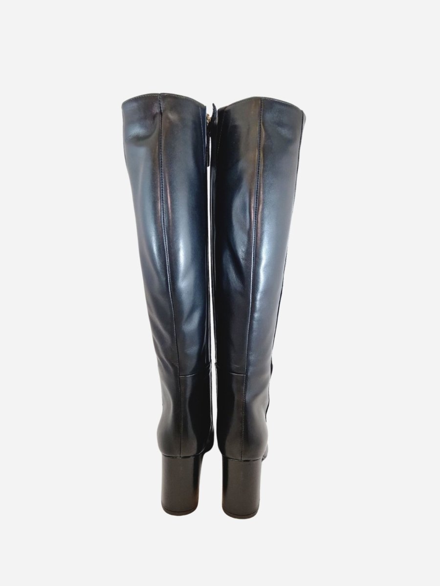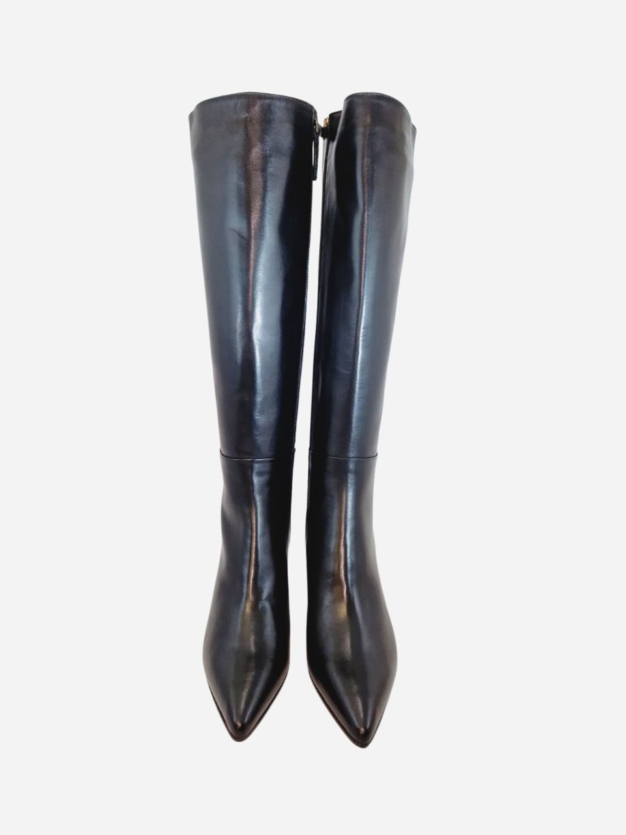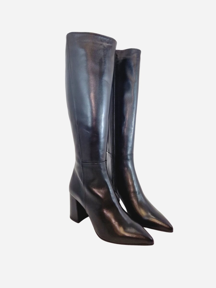 Stivali al ginocchio by Franco Russo. Stivali realizzati in vera pelle con fondo in cuoio. Chiusura con cerniera laterale. Tacco largo di 7 cm. Made in Italy