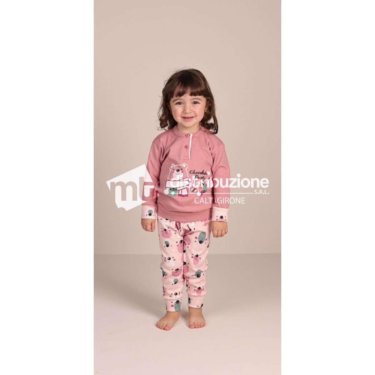 Pigiama neonata Gary autunno/inverno, maglia tinta unita con stampa ed elastico sotto, pantalone fantasia con bordo in costina. Composizione: 100% caldo cotone inerlock. Confezione da 1 pezzo. Disponibile nei colori Cipria e Rosa nelle taglie 12 โ€“ 18 โ€“ 24 โ€“ 30 mesi.