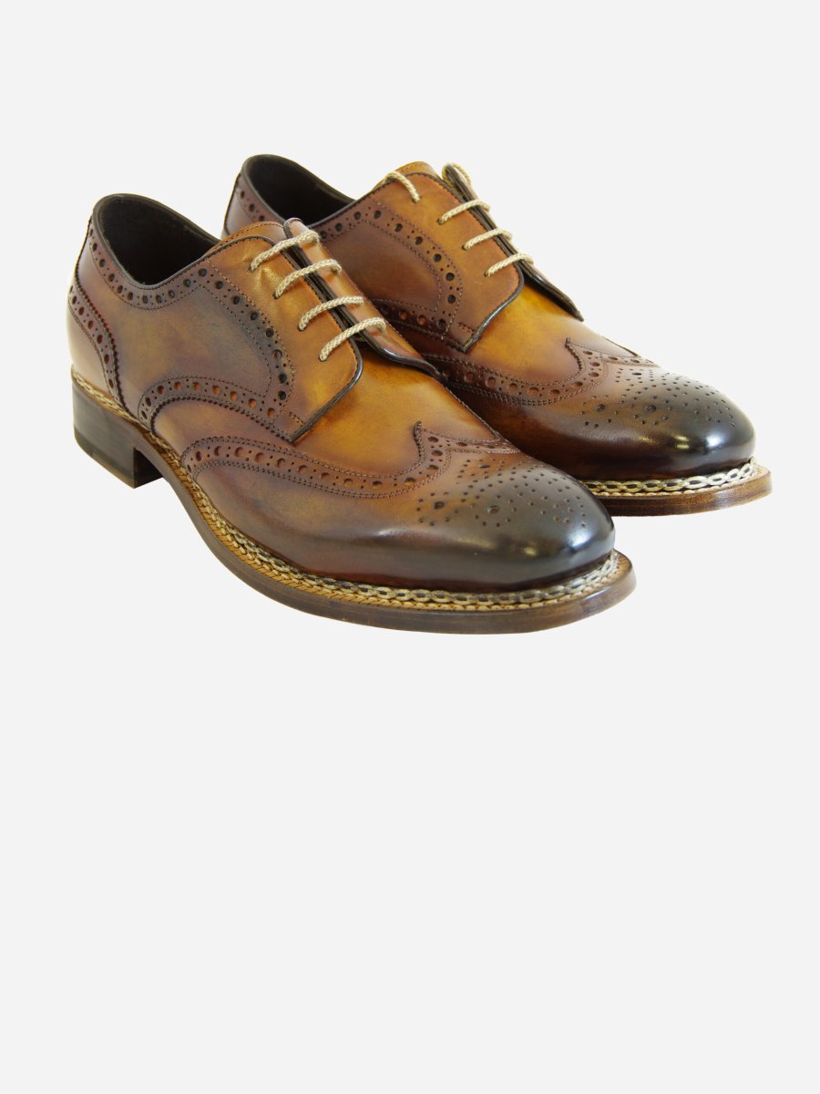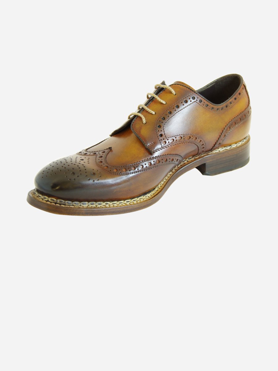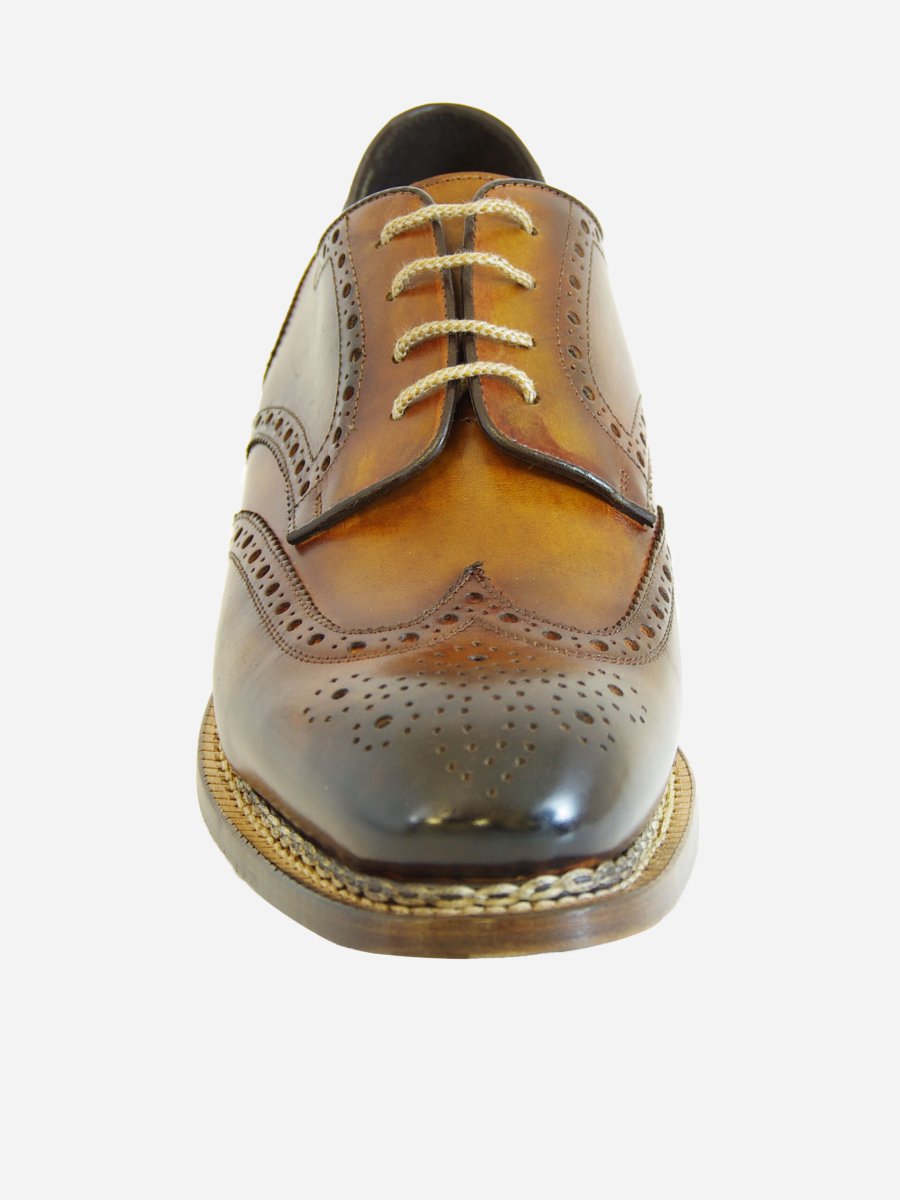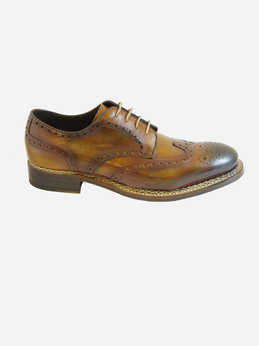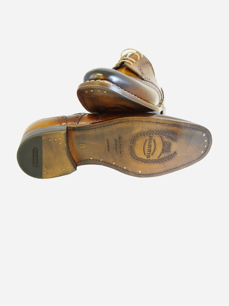 Scarpa allacciata 1013 di Harris. Stringata, modello francesina con lavorazione doppio norvegese e suola in cuoio. La tomaia interamente lucidata a mano, presenta cuciture decorative che ne definiscono la linea semplice ma estremamente elegante, un classico intramontabile