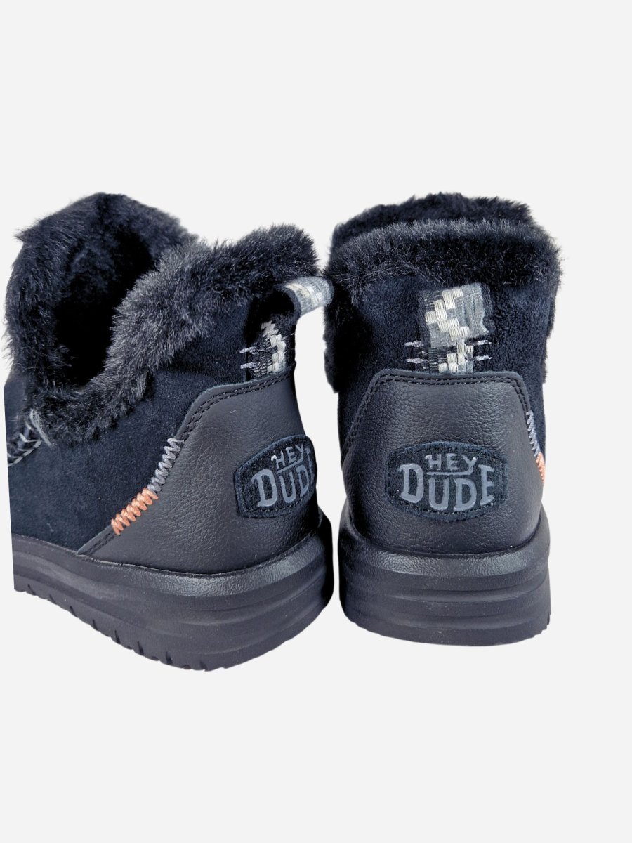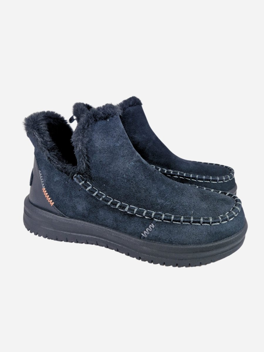 Stivaletti CAMDEN by Hey Dude. Calzature realizzate in camoscio, arricchite da cuciture a contrasto. Interno in morbido pelo e suola in gomma leggera. La linguetta permette una calzata semplice e comoda. Disponibile in due varianti: Nero, Beige.