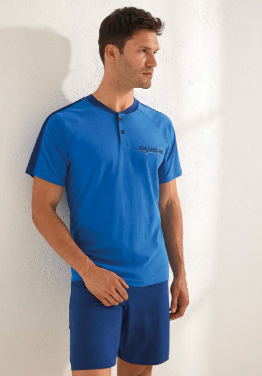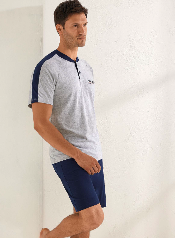 Pigiama corto calibrato uomo Il Granchio primavera/estate, maglia manica corta con due bottoncini, pantalone corto in tinta unita. Composizione: 100% cotone. Confezione da 12ย pezzi. Disponibile nei colori Assortiti (Denim e Grigio) nelle taglie assortite 3XL (4pz) โ 4XL (4pz) โ 5XL (4px).