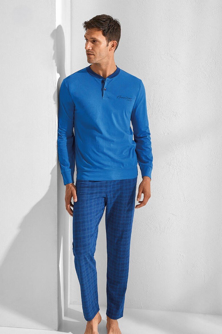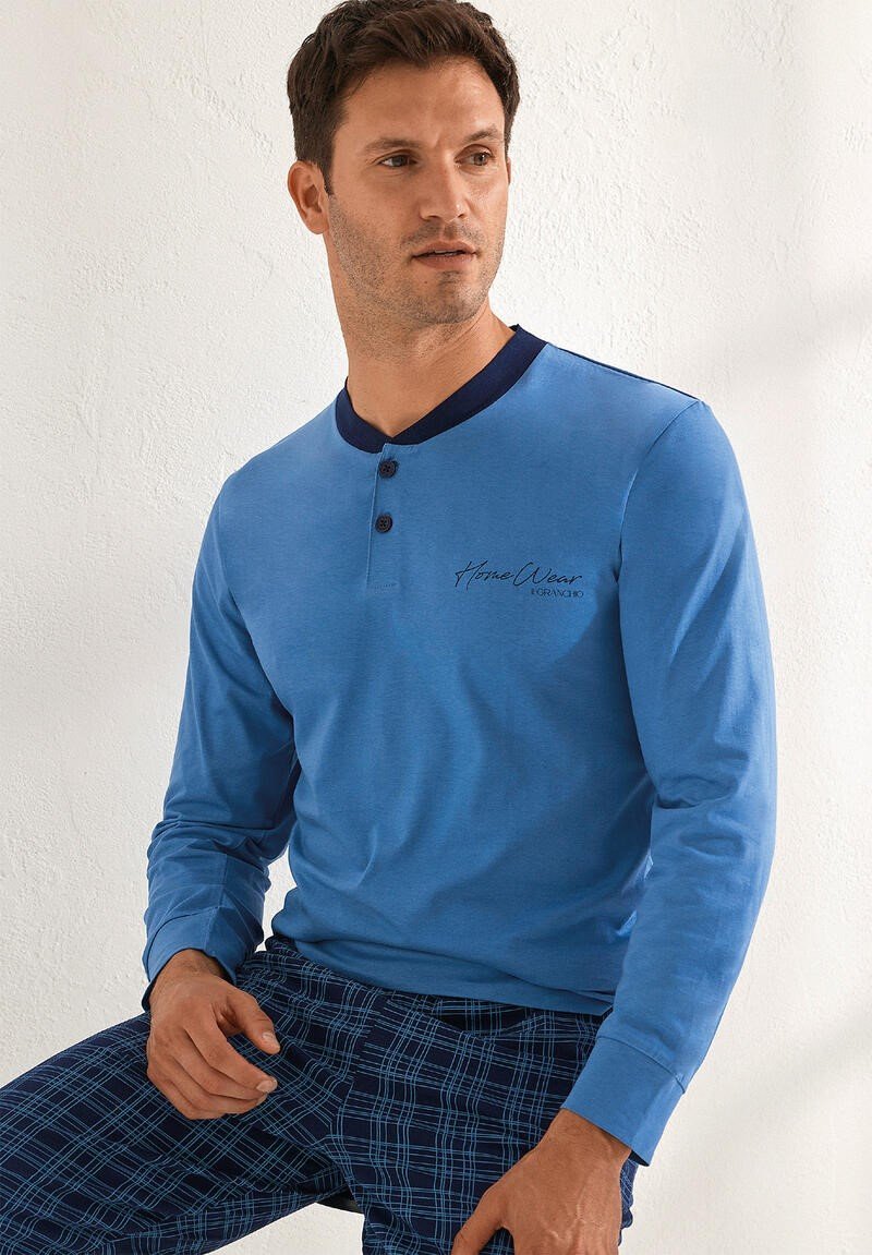 Pigiama uomo Il Granchio primavera/estate, maglia manica lunga a serafino con due bottoncini, pantalone con stampa a quadretti con elastico alle caviglie. Composizione: 100% cotone. Confezione da 16 pezzi. Disponibile nei colori Assortiti (Avio e Denim) nelle taglie assortite 46 (4pz) โ 48 (6pz) โ 50 (4px) โ 52 (2pz).