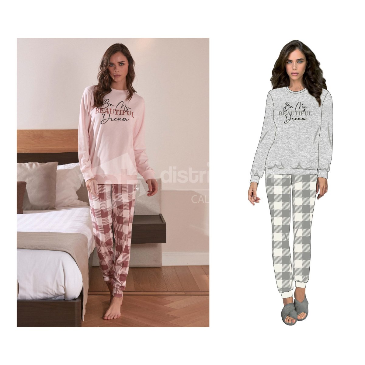 Pigiama donna Intimami, in caldo cotone, maglia girocollo manica lunga, pantalone lungo con stampa a quadri, il tutto con polsini. Composizione: 100% cotone interlock. Confezione da 12 pezzi. Disponibile nei colori Assortiti (Rosa e Grigio) nelle taglie assortite S (2pz) โ M (4px) โ L (4pz) โ XL (2pz).
