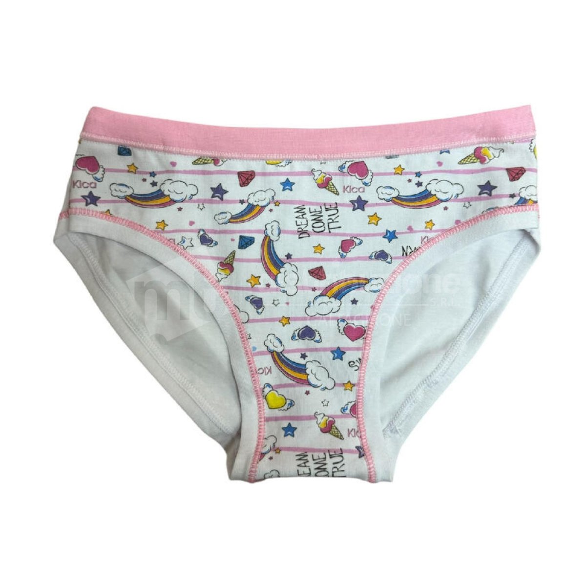 Slip bimba Kica in cotone elasticizzato con fantasia. Composizione: 90% Cotone 10% elastan. Confezione da 12 pezzi. Disponibile nel colore Bianco nelle taglie 3 – 4 – 5 – 6 – 7 – 8 – 9 – 10.