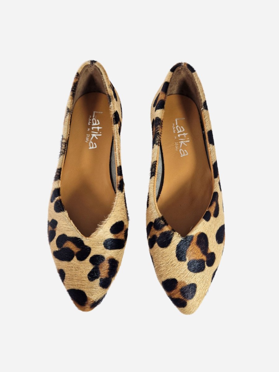 Ballerine maculate by Latika. Calzature realizzate in cavallino maculato con fondo in cuoio. Made in Italy