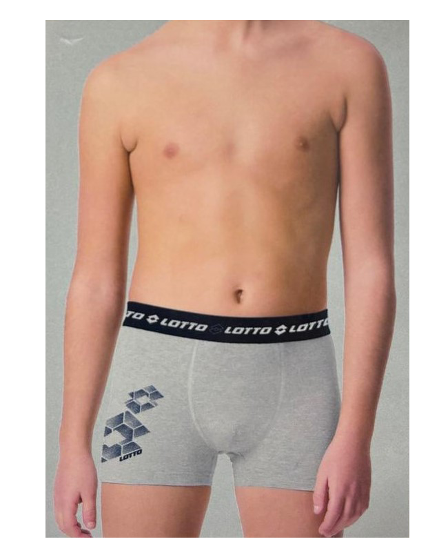 Boxer ragazzo Lotto, in cotone bielastico. Composizione: 90% cotone 10% elastan. Confezione da 6 pezzi. Disponibile nei colori Assortiti (Jeans, Grigio e Nero) nelle taglie 11/12 โ 13/14 โ 15/16 anni.
