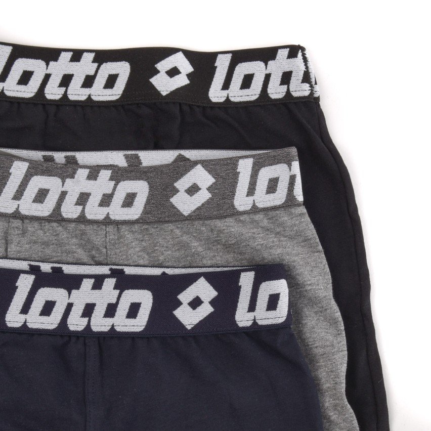 Boxer uomo Lotto, in cotone bielastico. Composizione: 95% cotone 5% elastan. Confezione da 6 pezzi. Disponibile nei colori Assortiti (Blu, Grigio Melange e Nero) nelle taglie 3 – 4 – 5 – 6 – 7.