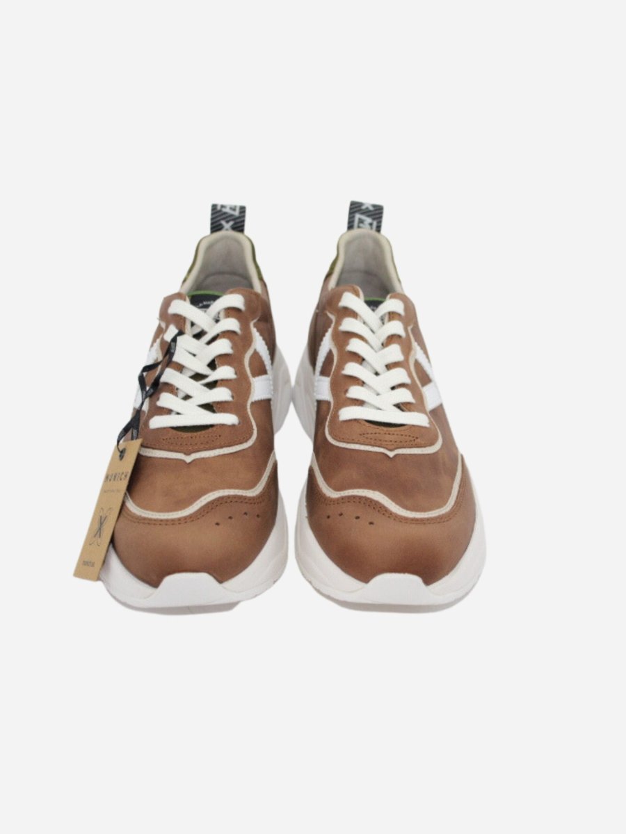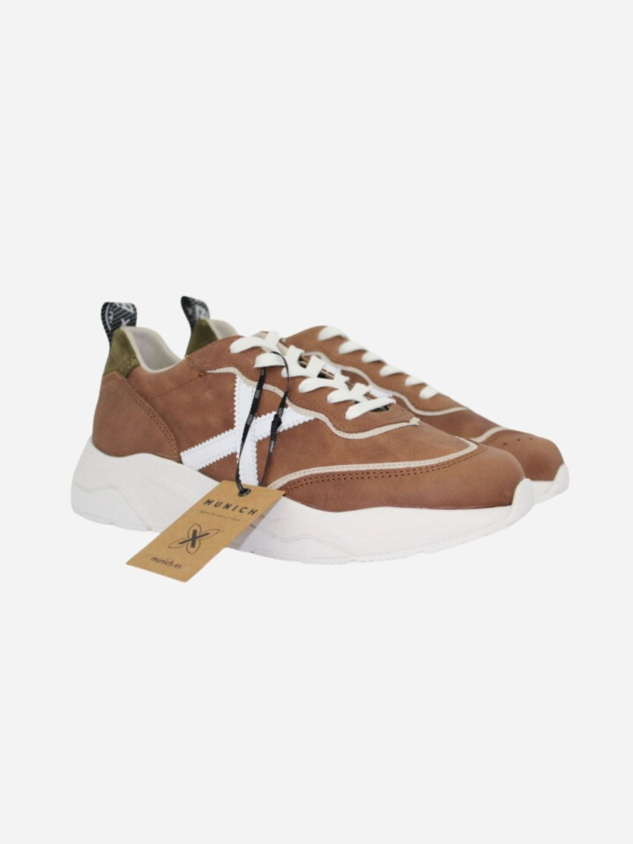 Sneakers marroni by Munich. Scarpe realizzate in pelle scamosciata con dettagli verdi a contrasto. Suola in gomma alta ultra-leggera. Chiusura con lacci. Munich รจ il brand Made in Spain che realizza calzature dallo stile sportivo e versatile con un design ricercato e fantasioso. Fondata nel 1939, l’azienda รจ oggi un’icona nel mondo dello streetwear.
