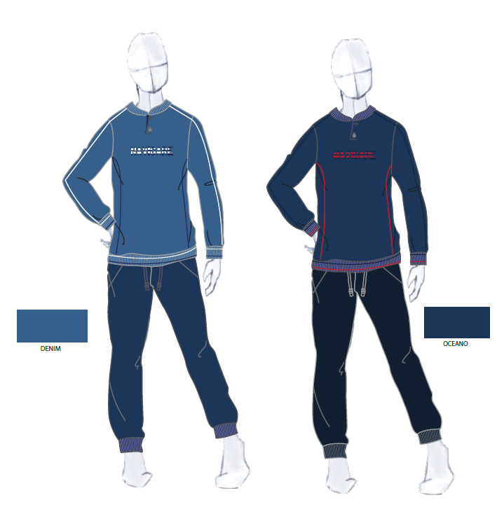 Pigiama ragazzo Navigare primavera/estate, maglia manica lunga a serafino con bottoncini, pantalone lungo in tinta unita. Composizione: 100% cotone. Confezione da 1 pezzo. Disponibile nei colori Denim e Oceano nelle taglie 10 – 12 – 14 – 16 anni.