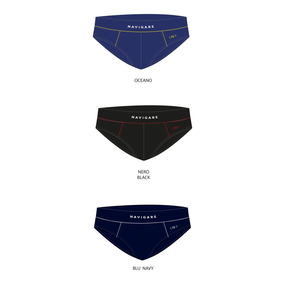 Slip uomo Navigare, in cotone con elastico in vita. Composizione: 100% cotone. Confezione da 6 pezzi. Disponibile nel colore Assortito (Blu Navy, Nero e Oceano) nelle taglie 5 – 6 – 7.