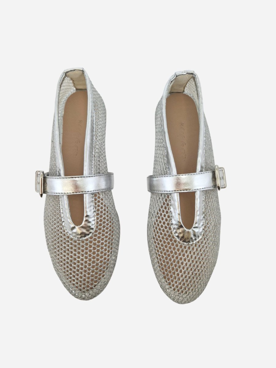Ballerine a rete by Nikhita. Scarpe realizzate in tessuto a rete con cinturino e bordino in pelle. Suola in materiale sintetico. Disponibile in piรน colori. Made in Italy