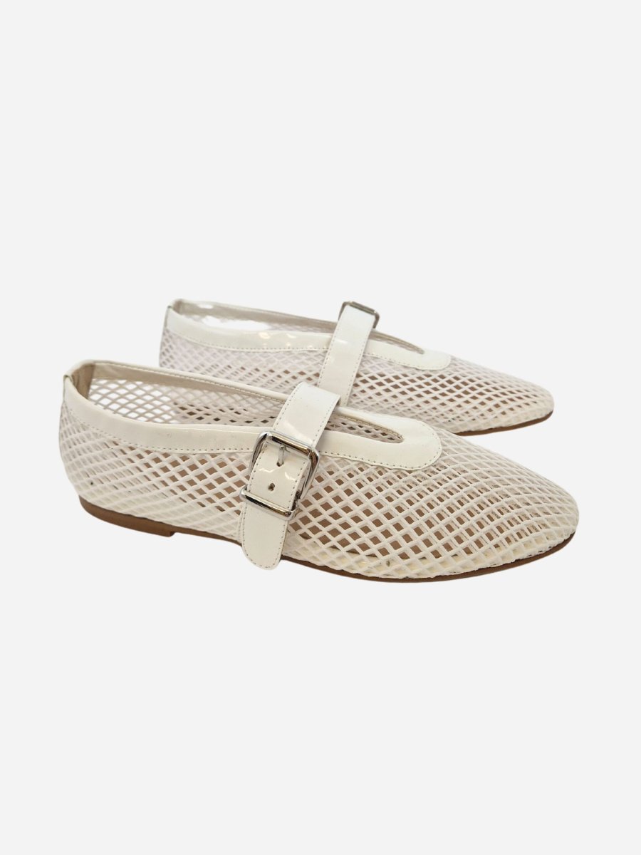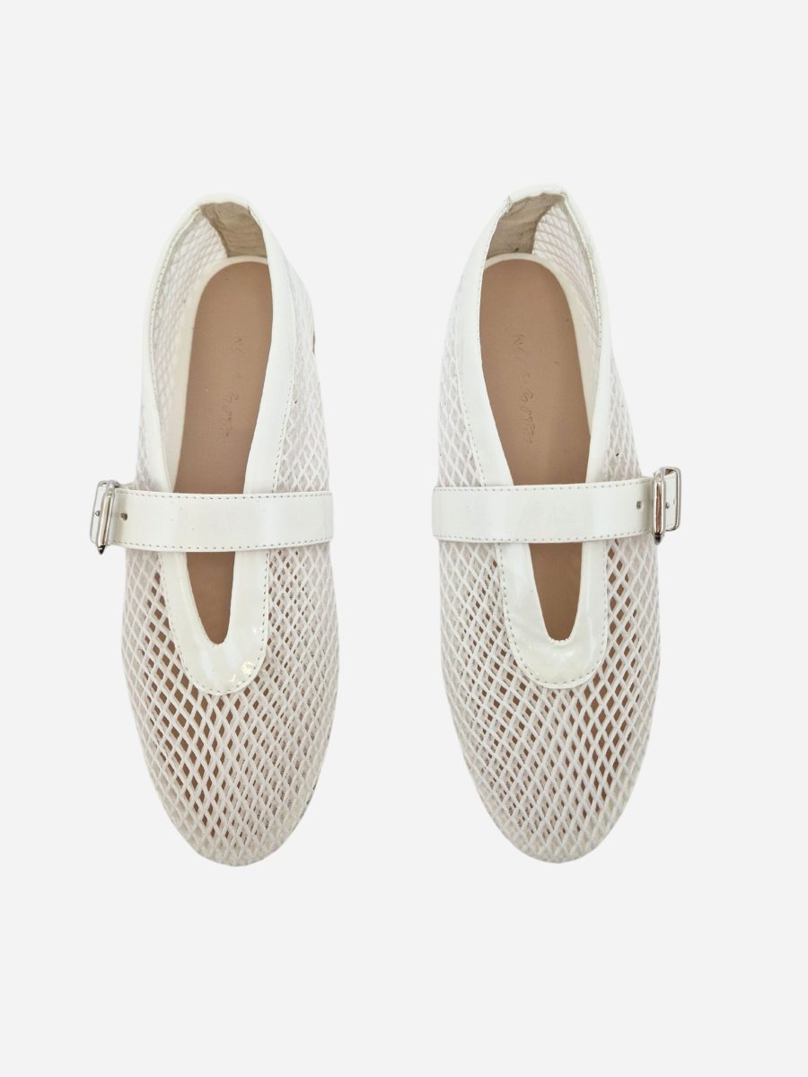 Ballerine a rete by Nikhita. Scarpe realizzate in tessuto a rete con cinturino e bordino in pelle. Suola in materiale sintetico. Disponibile in piรน colori. Made in Italy
