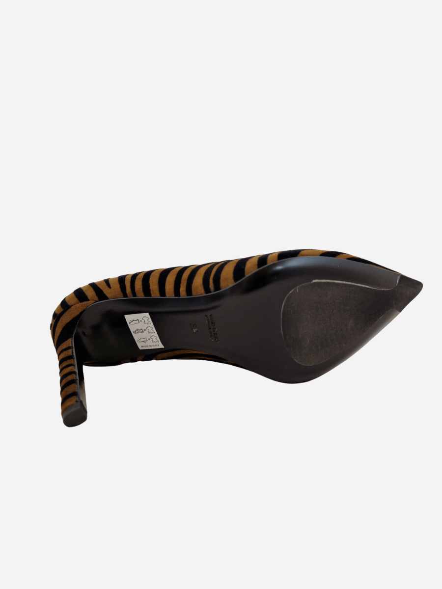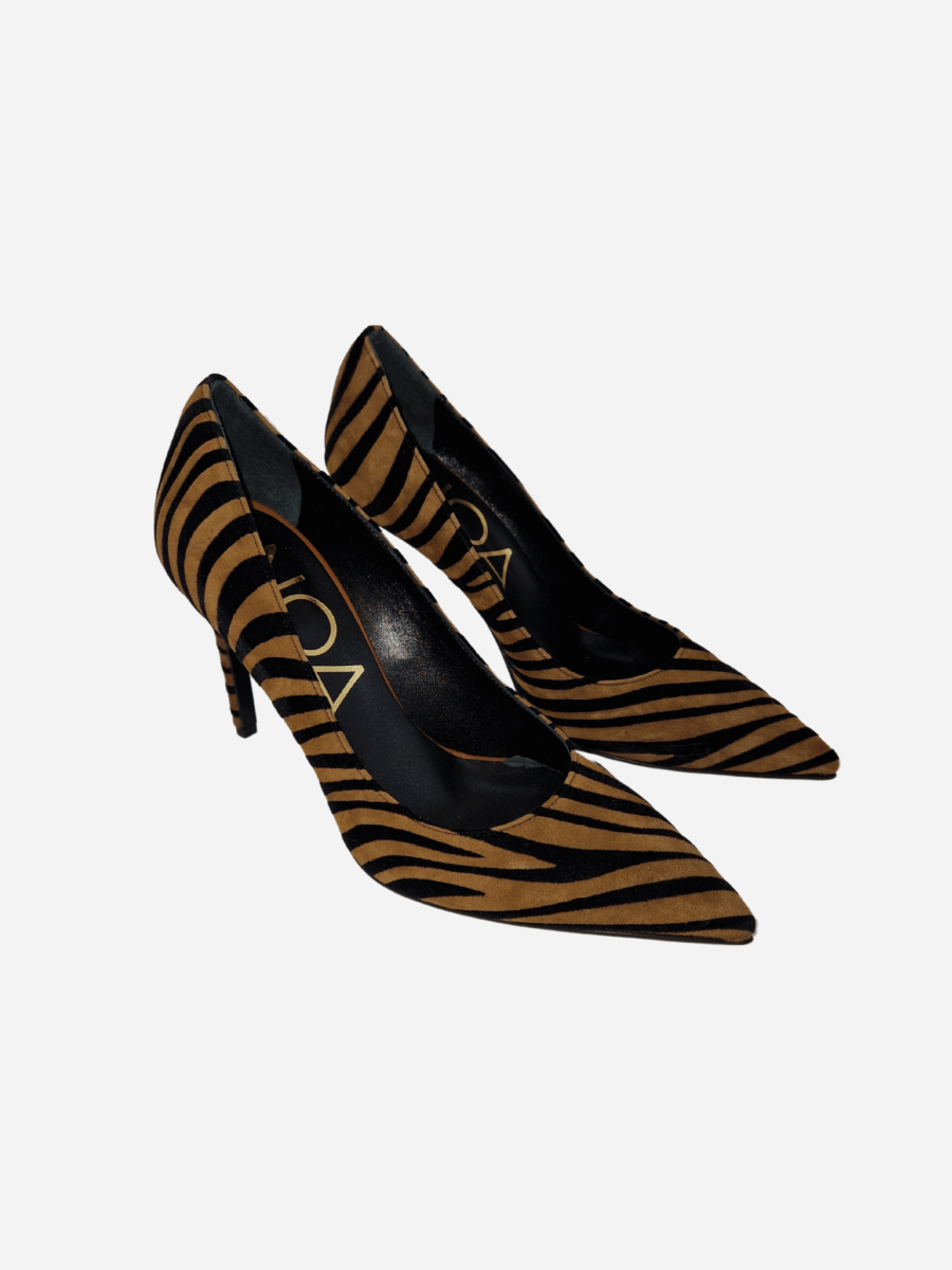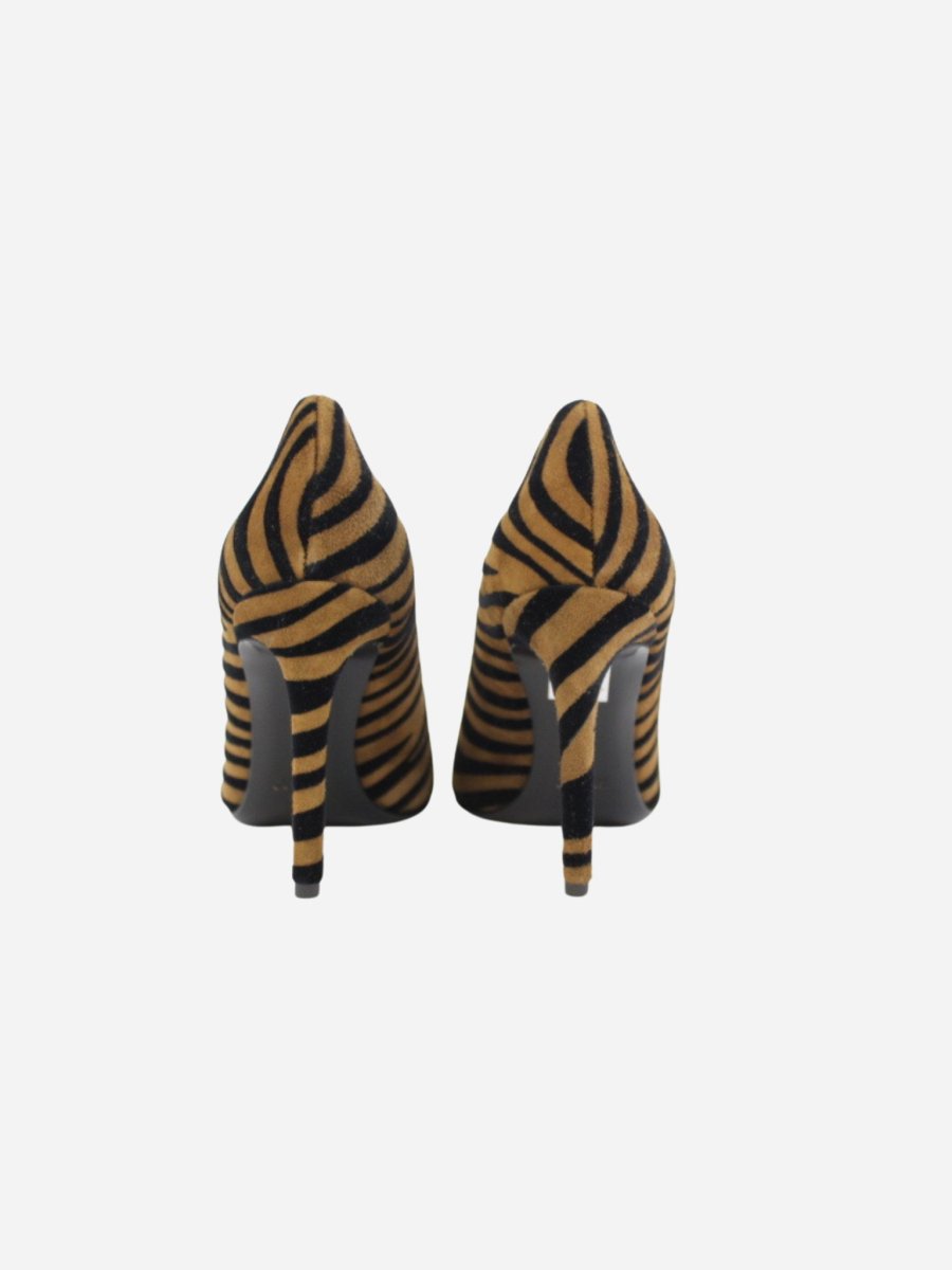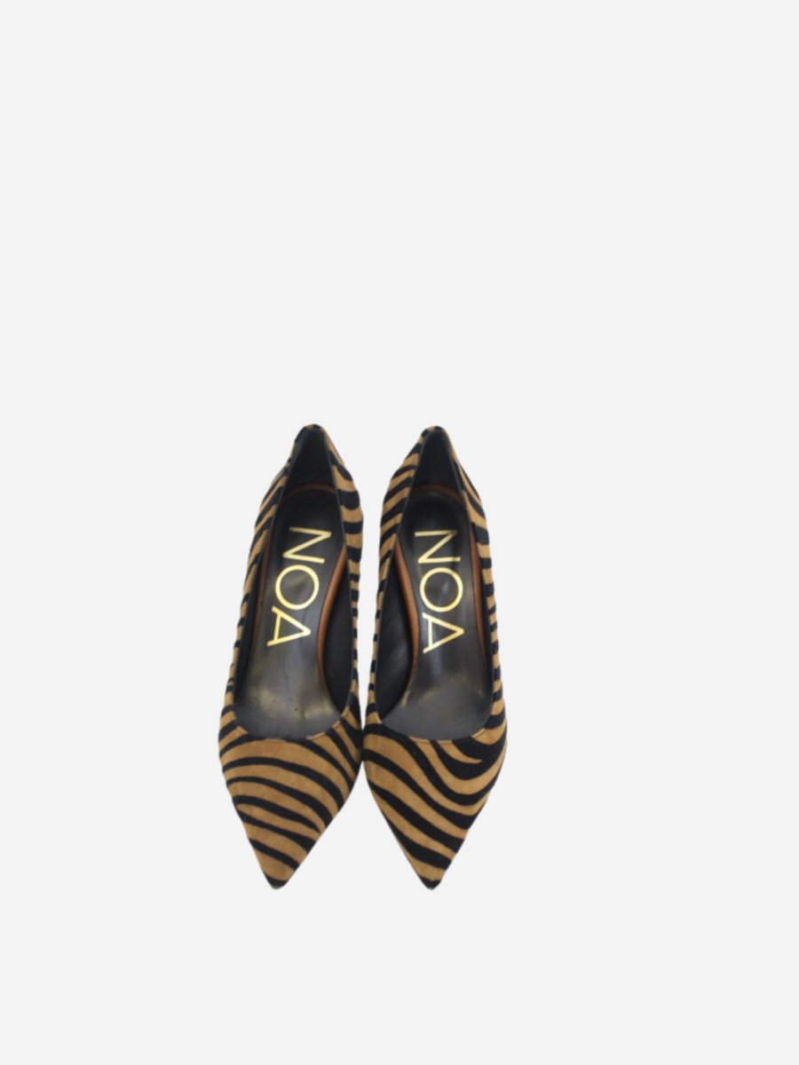 Décolleté a fantasia tigrata by Noa. Scarpa realizzata in vera pelle scamosciata con fondo in cuoio e suola in materiale sintetico di qualità. Tacco a spillo di 9 cm. Le calzature firmate Noa sono interamente Made in Italy, caratterizzate da linee semplici, eleganti e femminili. Adatte a ogni look, donano un tocco chic alla quotidianità.